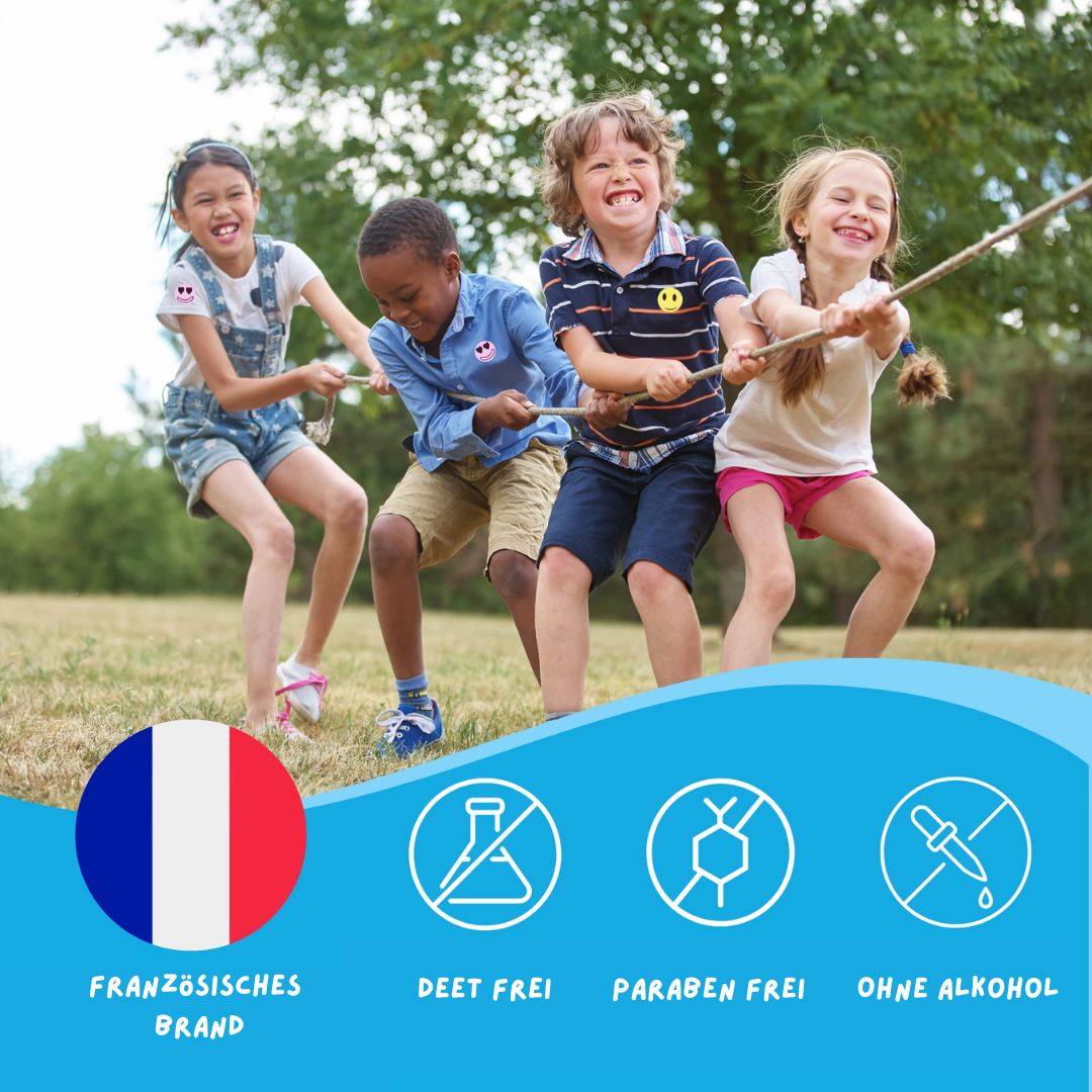 Was unser Mückenschutz-Set besonders macht, ist das Design: Aufkleber mit fröhlichen Smileys motivieren Kinder und bieten einen spielerischen Zugang zum Thema Schutz. Die Smiley-Gesichter sind liebevoll gestaltet und laden dazu ein, beim nächsten Familientag oder im Kindergarten stolz gezeigt zu werden. Das macht die Patches nicht nur wirksam – sondern auch trendy und unterhaltsam.