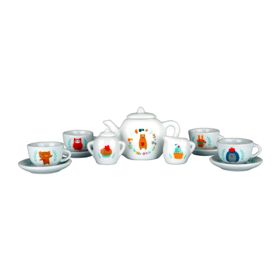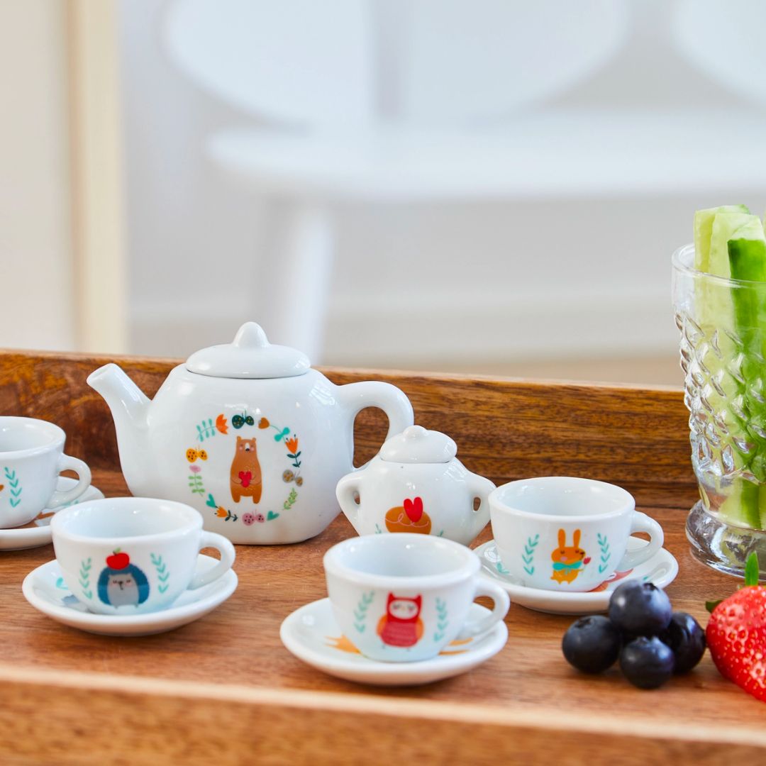 Mit dem Little Woodies Friends Porzellan Tee-Set tauchen Kinder ab 3 Jahren in die Welt der Rollenspiele ein. Es ist nicht nur ein Set für Teepartys, sondern ein Werkzeug, um Fantasie und Kreativität zu fördern. Das Rollenspiel mit dem Teeservice stärkt die sozialen Fähigkeiten und lehrt die Kinder spielerisch den Umgang mit Geschirr und das Verhalten bei Tisch.