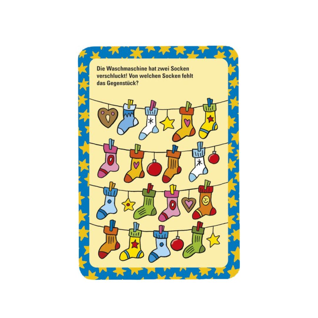 Die kompakte Aufbewahrung sorgt dafür, dass keine Karte verloren geht und Du jederzeit und überall mit Deinen Kindern rätseln kannst. Perfekt für die Adventszeit unterwegs, auf dem Sofa oder beim Warten auf das Christkind.