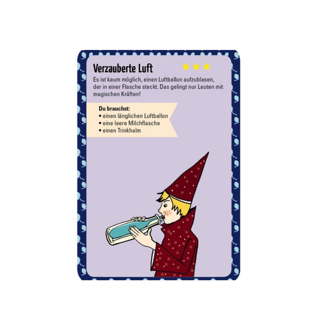 Werde kreativ, entdecke die faszinierende Kunst des Zauberns und bringe ein wenig Magie in deinen Alltag. Die „50 tollen Zaubertricks für kleine Magier“ sind mehr als nur ein Kartenset – sie sind der Schlüssel zu neuen Abenteuern, aufregenden Herausforderungen und jede Menge Spaß!