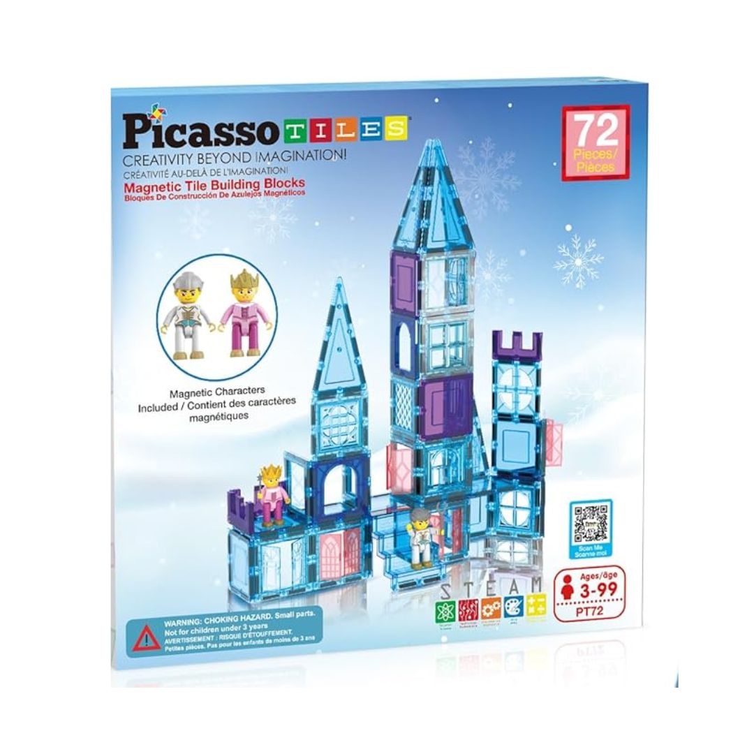 Das Magnetbausteine-Set „Schloss Eiskönigin“ besteht aus 72 Teilen, die in der beliebten Eispalast-Thematik gestaltet sind. Mit durchsichtigen Blöcken, die durch starke Magneten miteinander verbunden werden, können Kinder fantasievolle Burgen, Paläste und andere märchenhafte Konstruktionen erschaffen. Jede Fliese ist speziell so konstruiert, dass sie stabil miteinander verbunden bleibt, was für ein sicheres Spielerlebnis sorgt. Das Set ist sowohl für Anfänger als auch für erfahrene Baumeister geeignet, da es sich nahtlos in bestehende Picasso Tiles-Sets integrieren lässt.