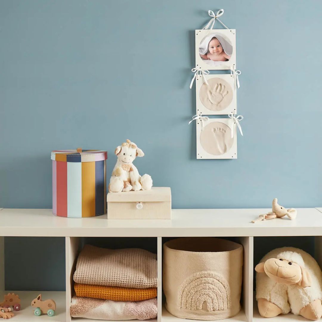 Die ersten Monate mit deinem Baby sind voller emotionaler Momente, die du nie vergessen möchtest. Mit dem Abdruckset mit Hängbilderrahmen kannst du diese Erinnerungen greifbar machen. Ob du einen Baby Handabdruck, einen Baby Fußabdruck oder eine Kombination aus beiden wählst – der Abdruck wird dich noch Jahre später an die kleinen Details erinnern. Der hochwertige weiße Bilderrahmen sorgt dafür, dass deine Erinnerungen einen stilvollen Platz an der Wand oder im Regal finden.