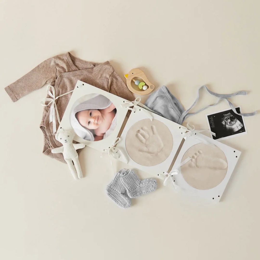 Das Set bietet dir nicht nur die Möglichkeit, zwei Gipsabdrücke zu gestalten, sondern auch gleichzeitig ein Foto deines Babys in Szene zu setzen. Dieses Zusammenspiel von Abdruck und Bild macht den Rahmen zu etwas ganz Besonderem. So entsteht eine wunderschöne Kombination aus visueller Erinnerung und greifbarem Moment.