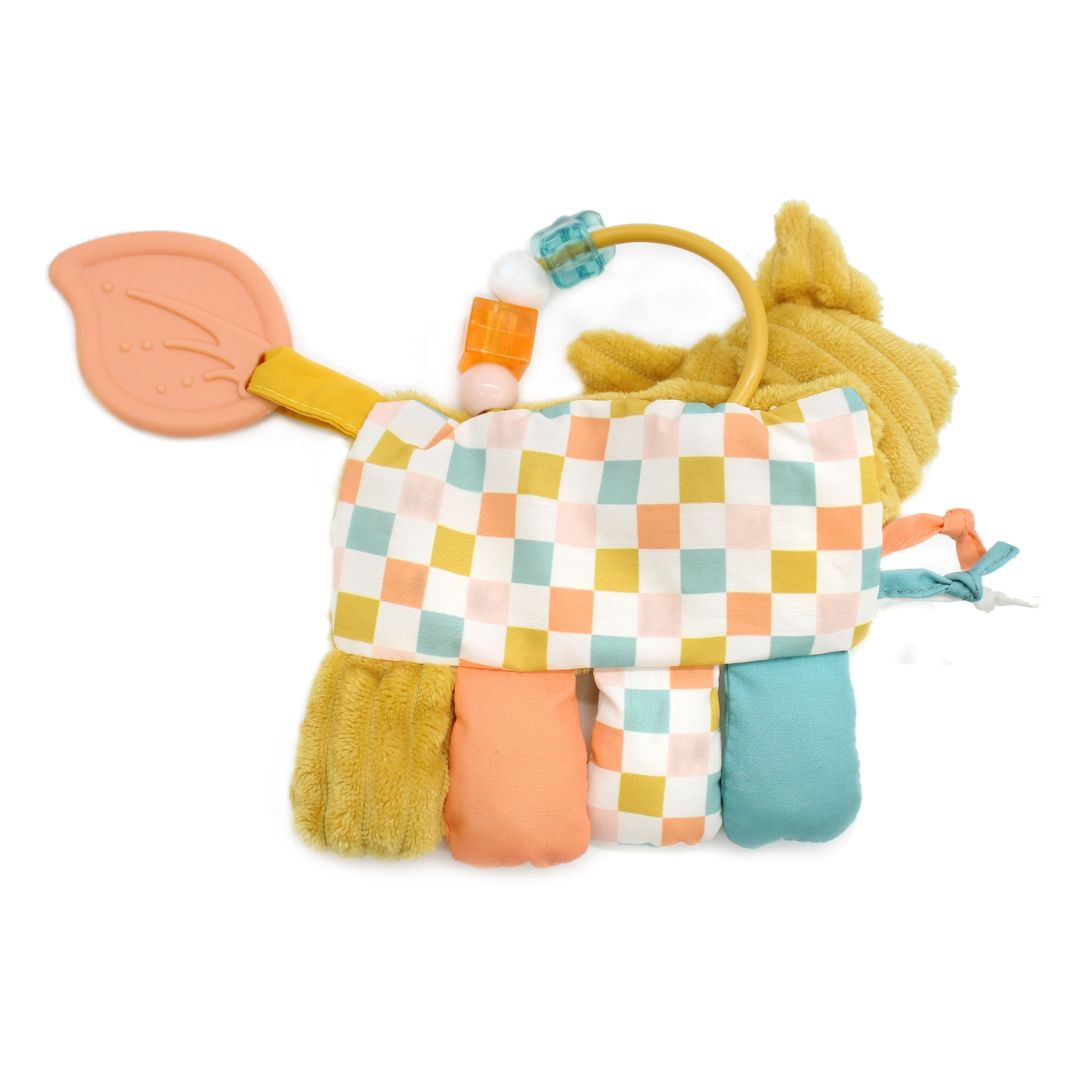 Integrierte Spiel- und Entdeckerfunktionen: Knoten, Raschelpapier, Pouet-Pouet, Perlen und Beißring