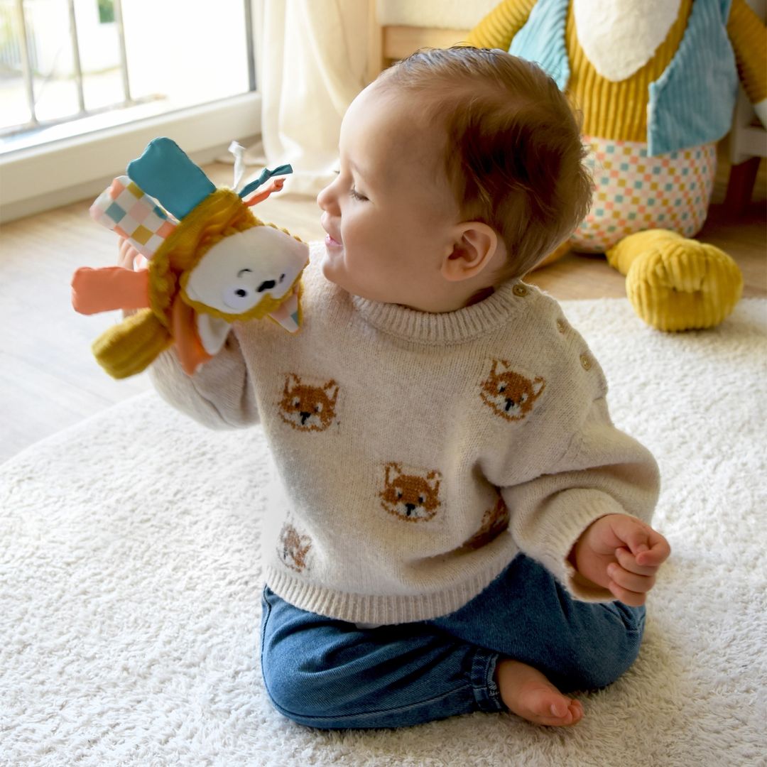 Babys brauchen Spielzeug, das Abwechslung bietet, die Sinne anregt und gleichzeitig Freude bereitet. Die Aktivitäts Rassel „Cyranos der Fuchs“ vereint all das: