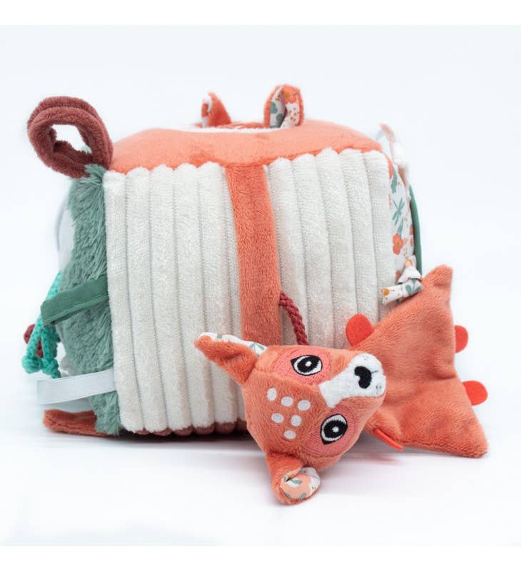 Unser Melemilos the Hirsch Aktivitätswürfel ist der ideale Begleiter für die frühkindliche Entwicklung. Hergestellt aus superweichem Cord, bietet dieser Würfel eine Fülle von akustischen und taktilen Aktivitäten, die kleine Entdecker begeistern werden.