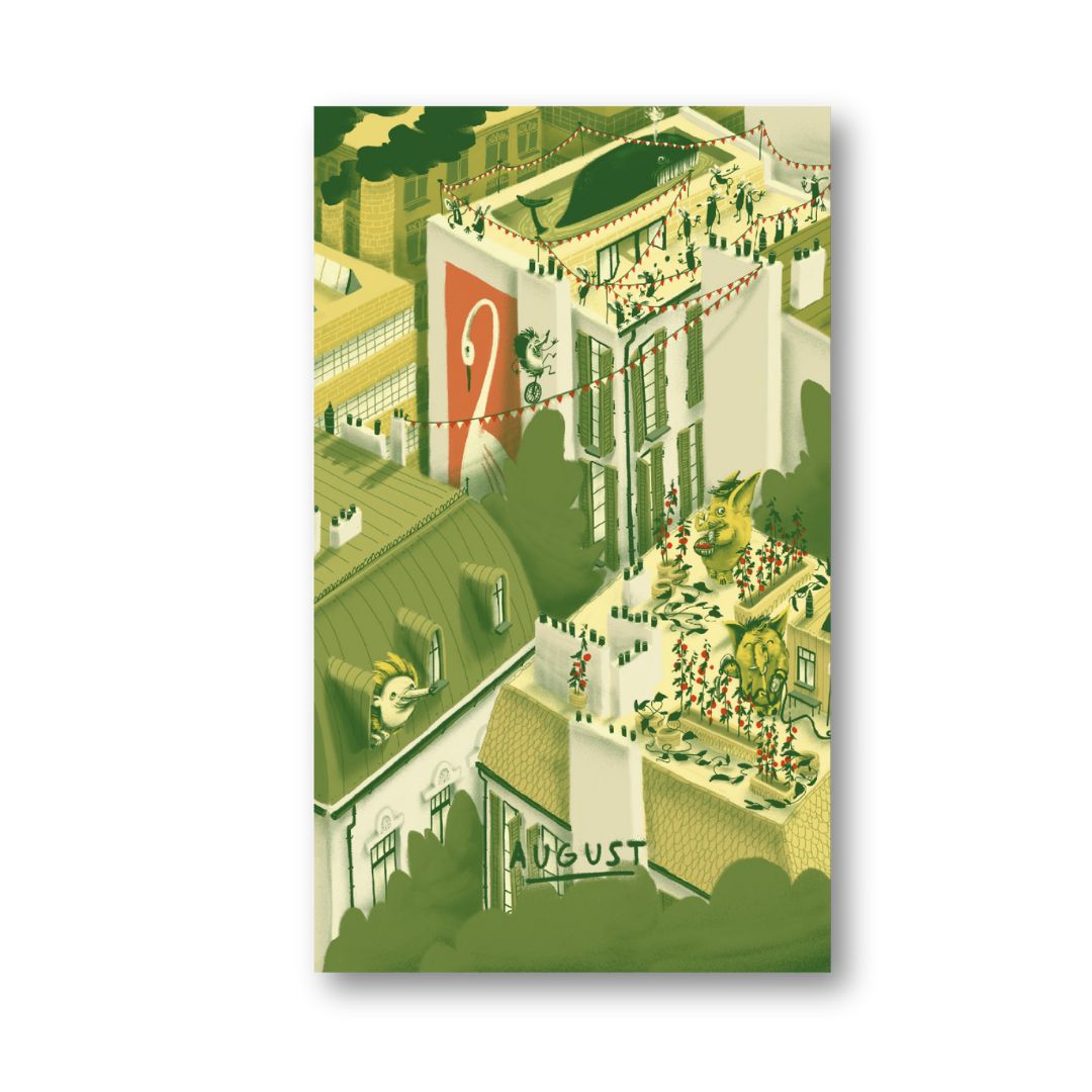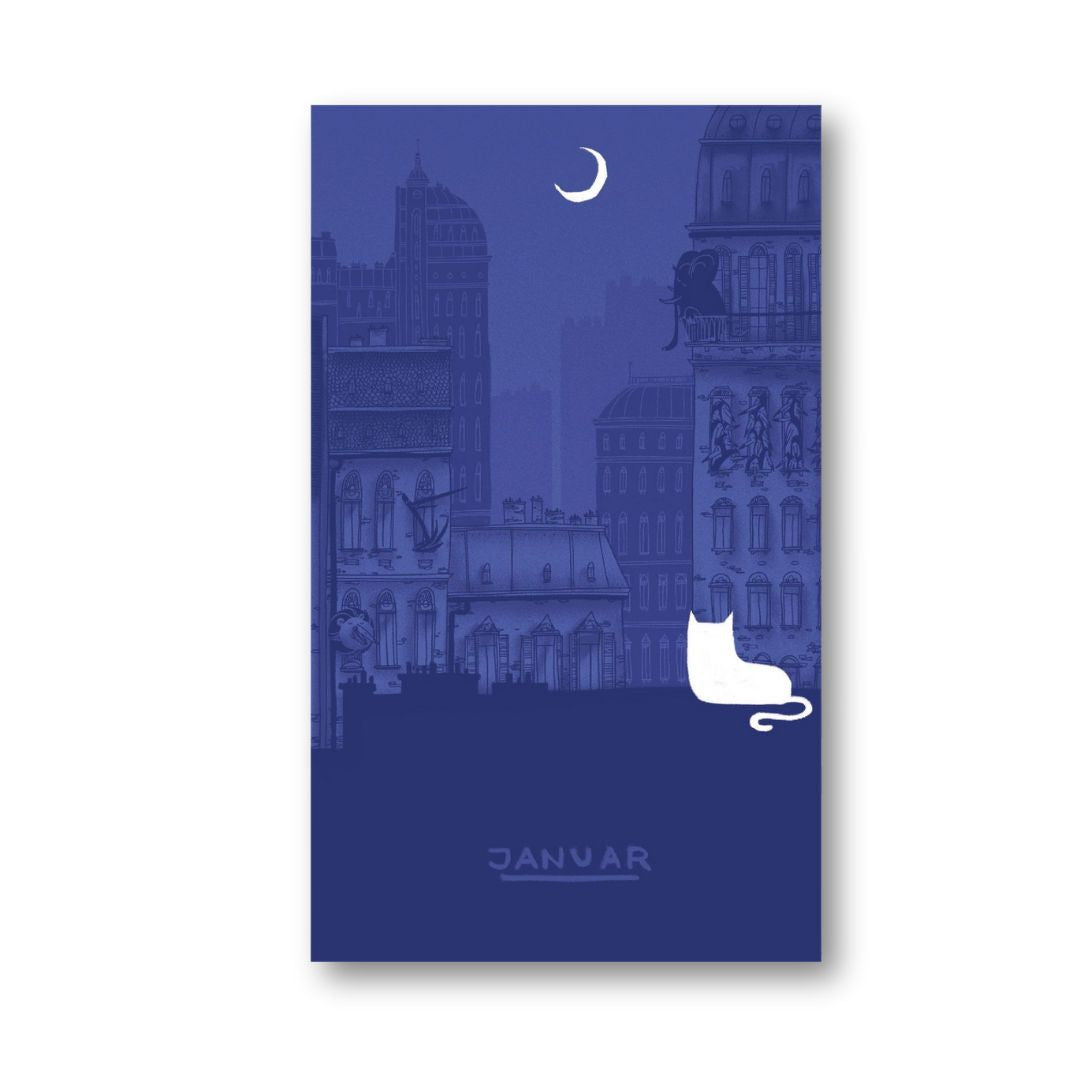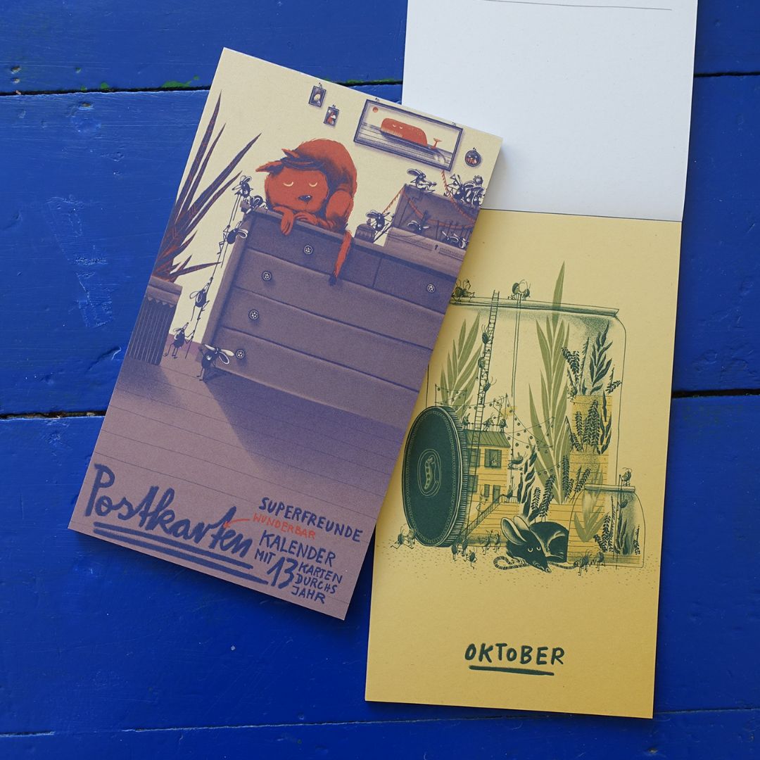 Postkartenkalender mit 13 Motiven zur Begleitung durchs ganze Jahr. Am Ende des Monats kann man die Karte abtrennen und analog durch die Welt schicken. Oder einfach an die Wand hängen!