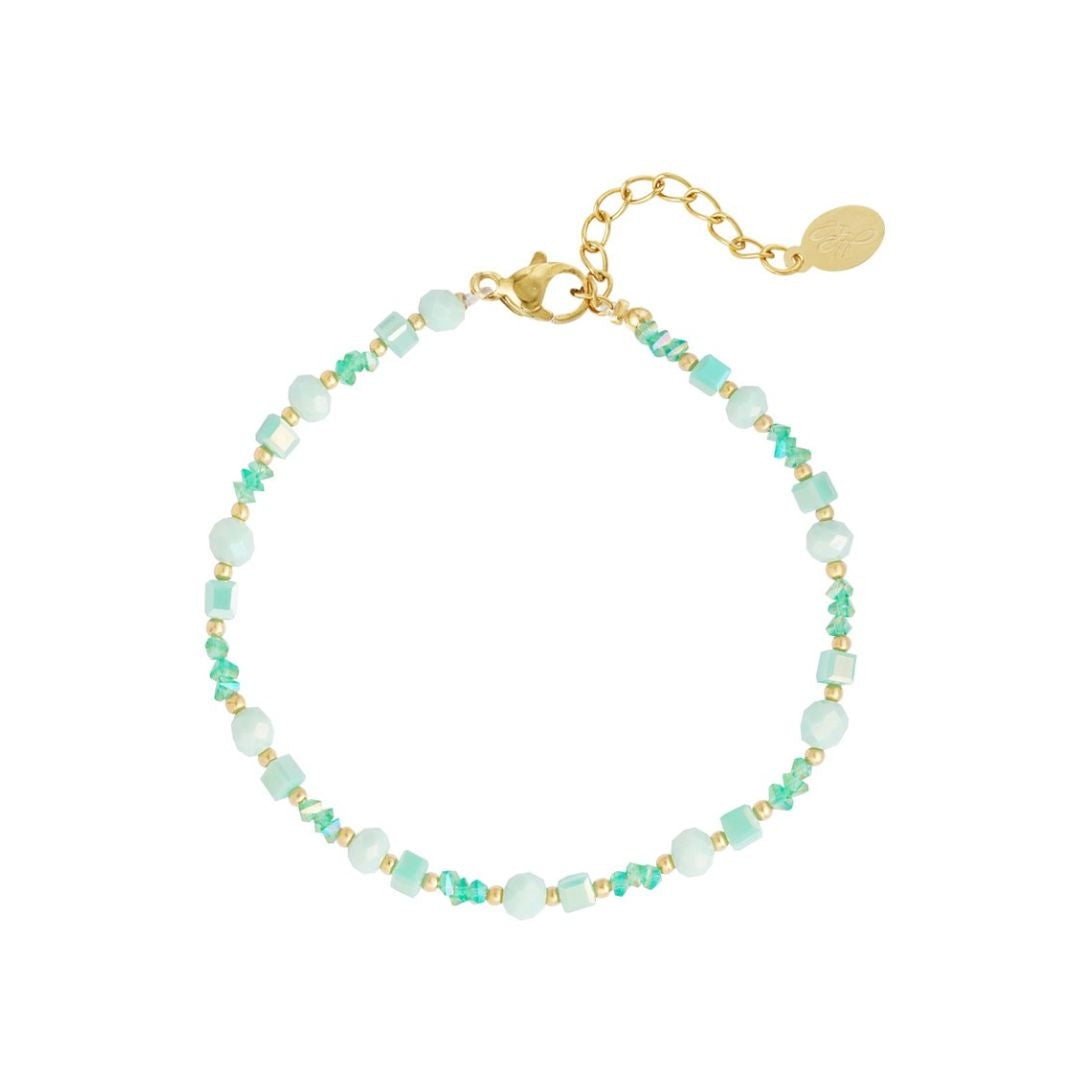 Premium Edelstahl vergoldet und bunte Glasperlen Grüntöne