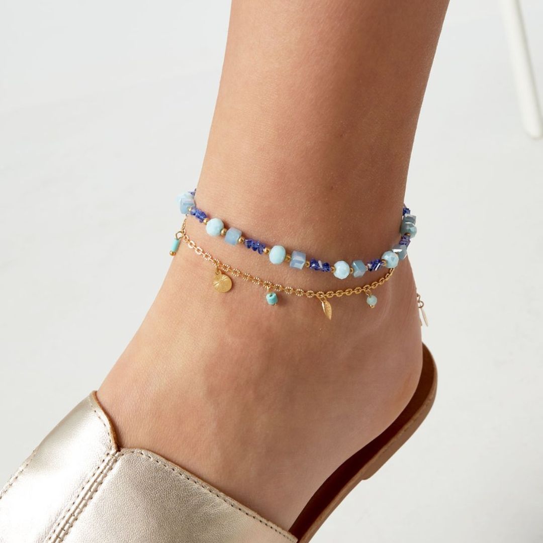 Armband und Fußkettchen mit Strand-Flair - Grün/Goldfarbe