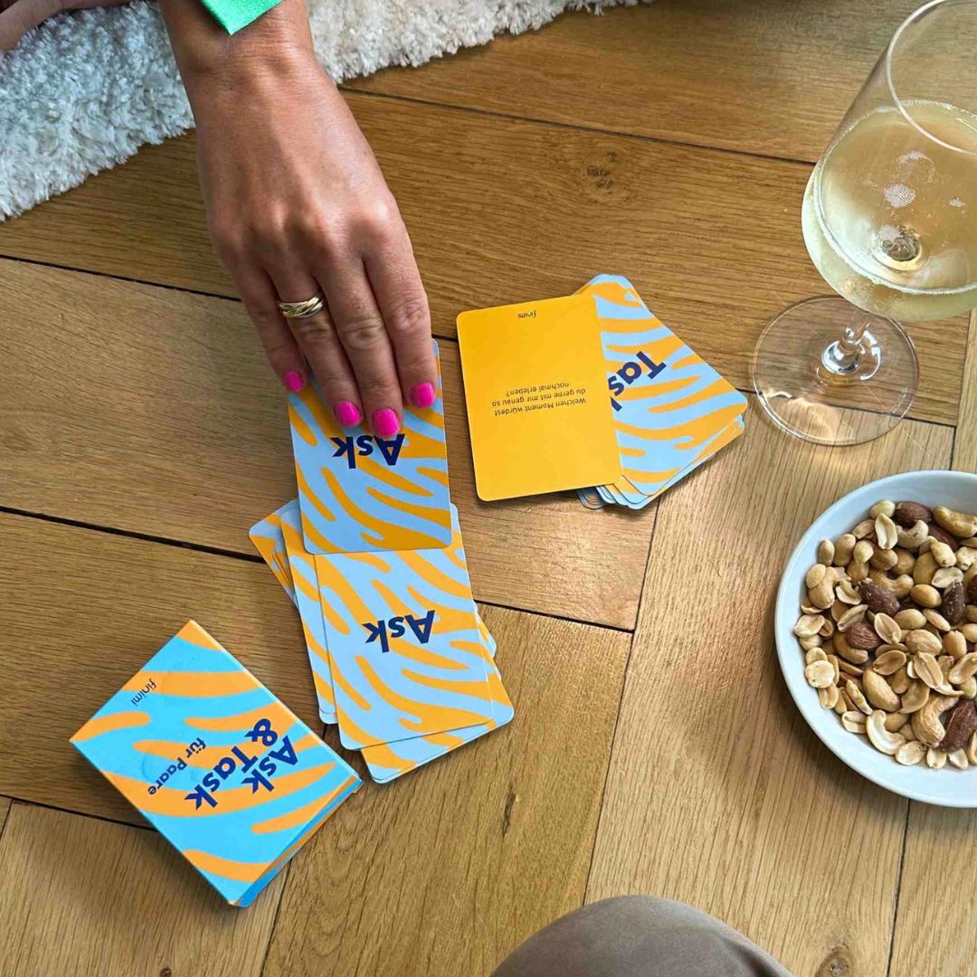Egal, ob ihr frisch verliebt seid oder schon seit vielen Jahren zusammen – das Kartenspiel für Paare von finimi bietet euch die Möglichkeit, eure Beziehung auf eine neue, aufregende Weise zu erleben. Mit seinen tiefgründigen Fragen, inspirierenden Aufgaben und spielerischen Anregungen ist es der perfekte Weg, um bedeutungsvolle Gespräche zu führen und euch als Paar noch näherzukommen.