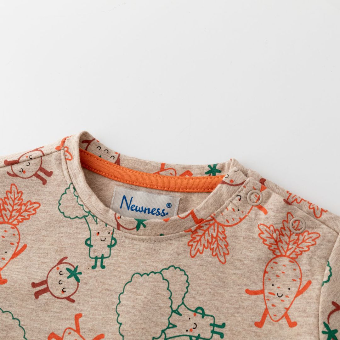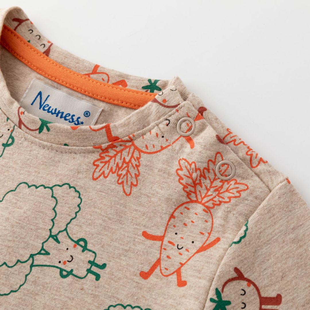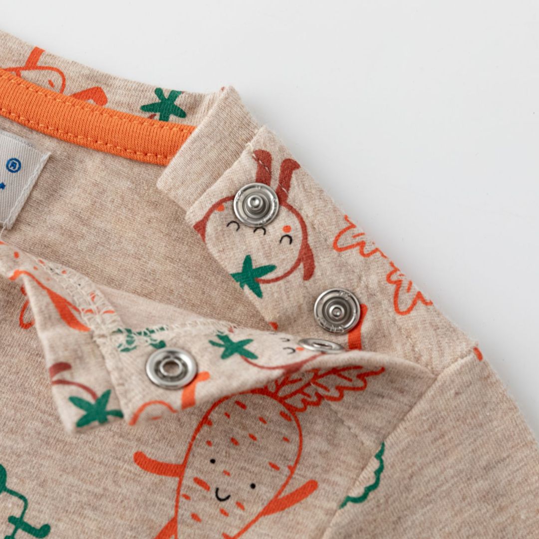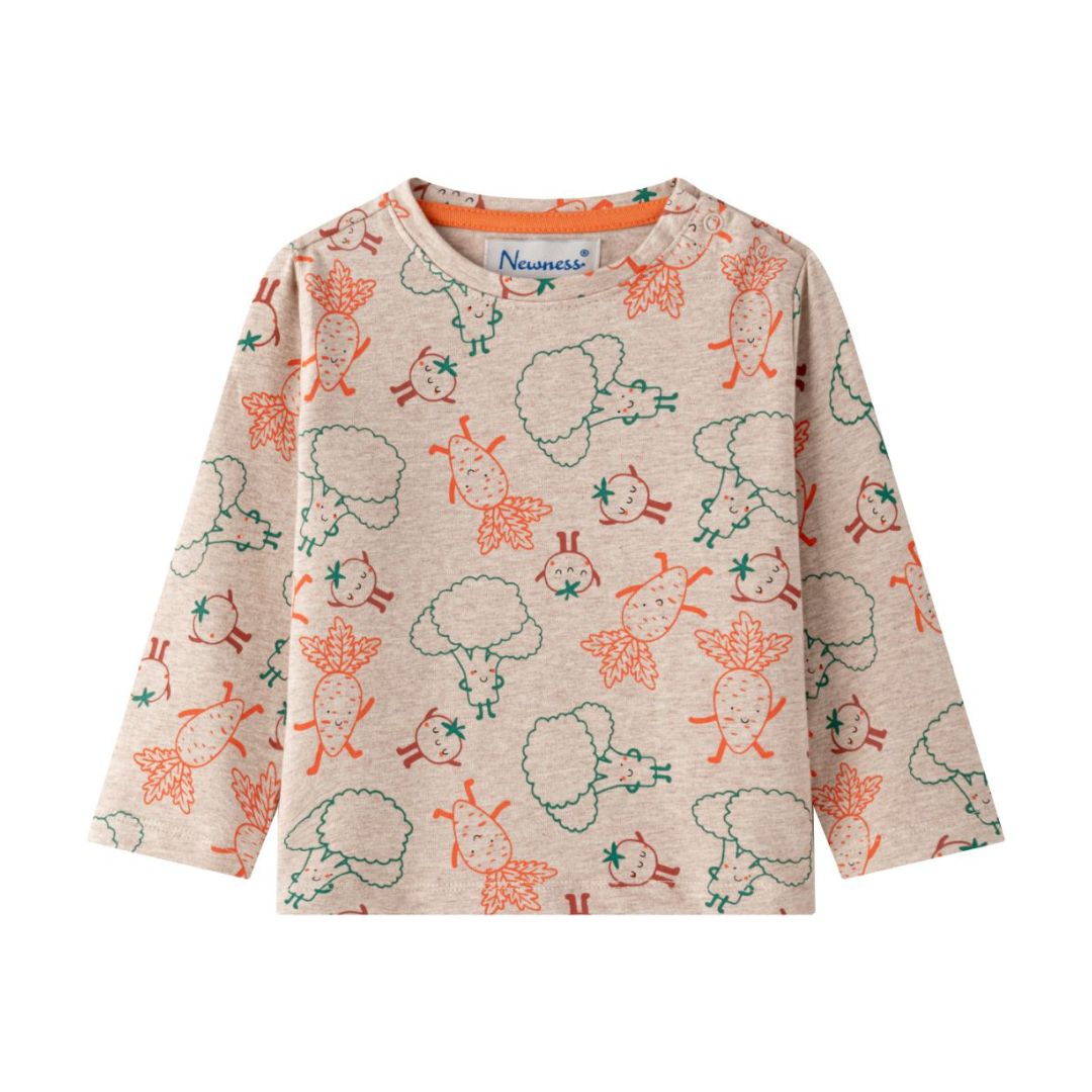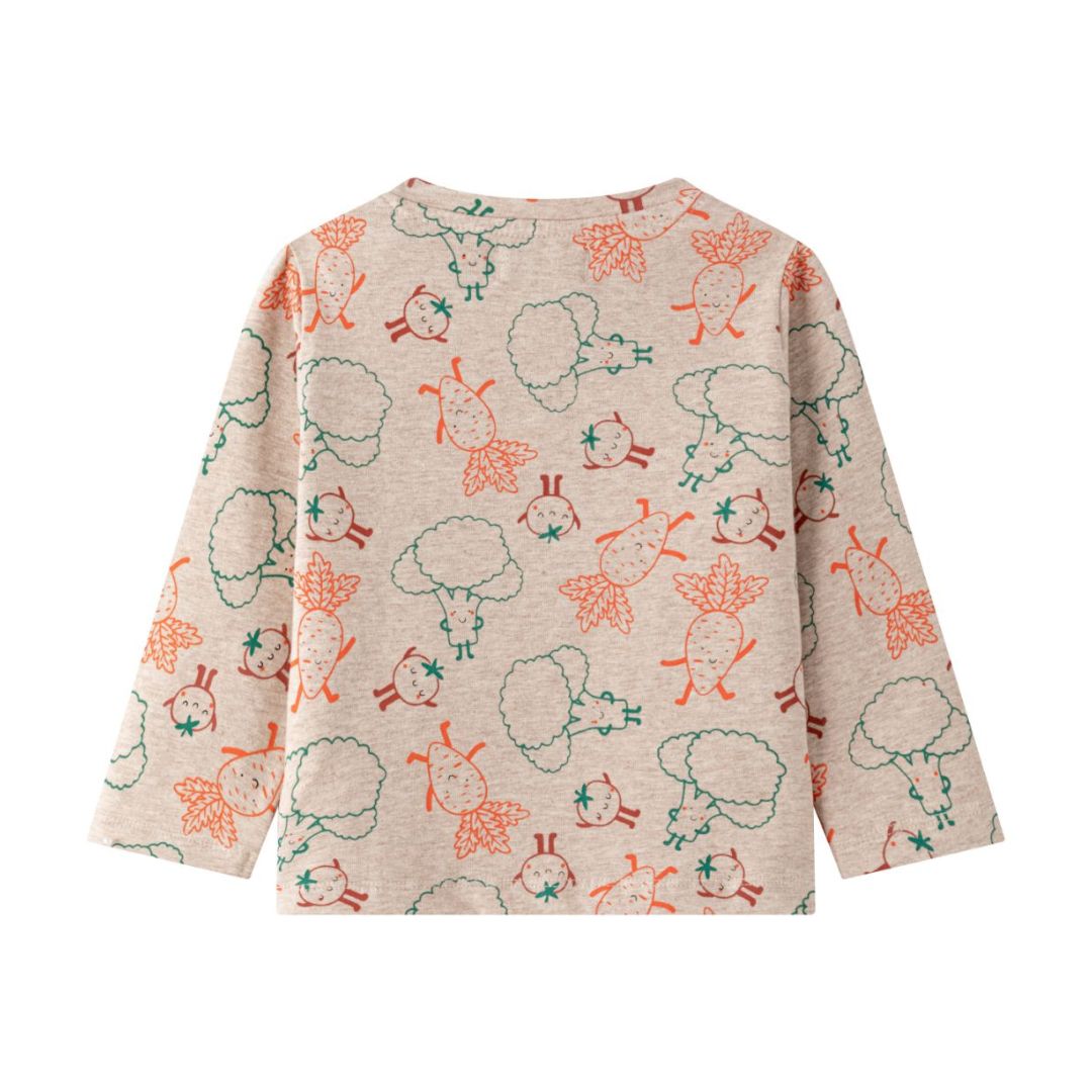 Langärmliges Baby-T-Shirt für Mädchen. Mit Raffung an der Schulter und doppeltem Volant am Saum. Wasseraufgedrucktes Regenbogendesign mit Glitzer- und Reliefdetails. Öffnung mit Knopf am Rücken.