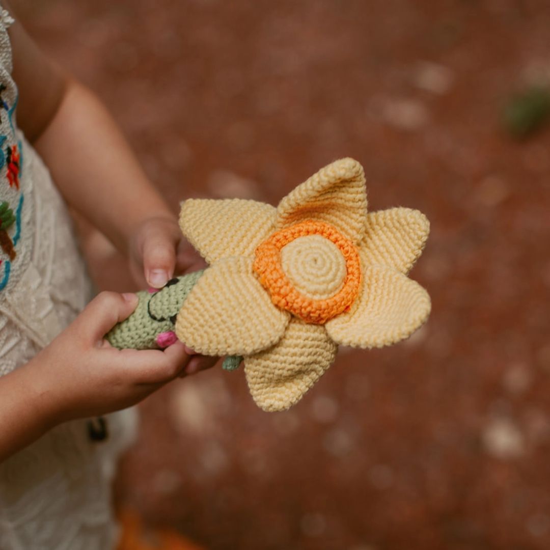 Suchst du nach einem zauberhaften Babyspielzeug, das nicht nur optisch begeistert, sondern auch mit seiner nachhaltigen und fairen Herstellung punktet? Die Baby Rassel 'Freundliche Narzisse Gelb' ist genau das Richtige! Diese süße, handgestrickte Rassel in Form einer fröhlichen kleinen Narzisse bringt Freude in jedes Kinderzimmer.