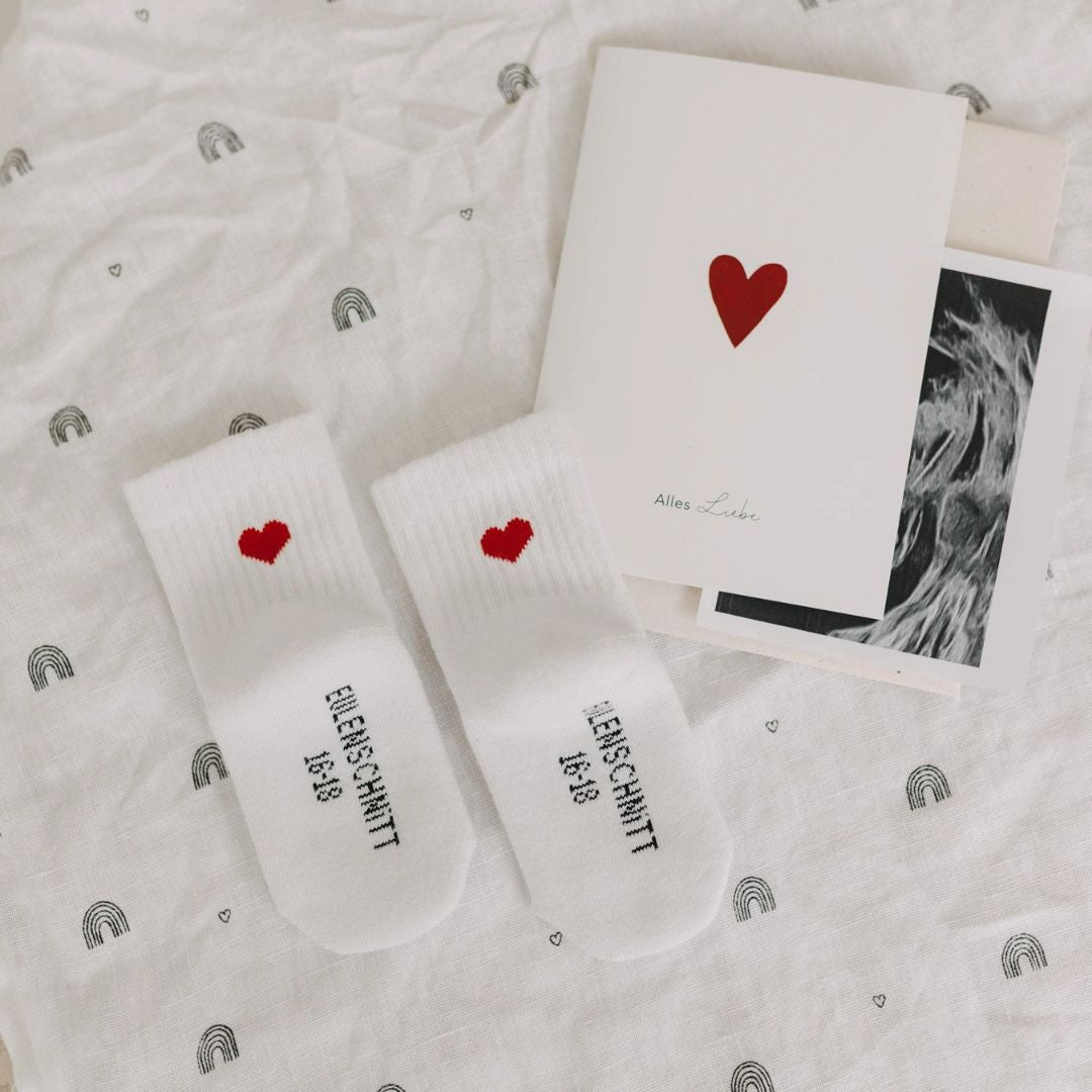 Diese Babysocken lassen Herzen höher schlagen! Mit ihrem minimalistischen Design und dem eingestickten roten Herz auf dem Bündchen sind sie ein zuckersüßes Accessoire für die Kleinsten. Sie vereinen Liebe, Wärme und Stil auf kleinstem Raum – und machen einfach glücklich. Ob als liebevolles Geschenk zur Geburt, kleine Aufmerksamkeit für frischgebackene Eltern oder als zarter Liebesbeweis für dein eigenes Baby – die Socken Herz Rot passen immer. Gefertigt aus weichem, anschmiegsamem Material, bieten sie höchsten Tragekomfort für zarte Babyfüße und bleiben dabei formstabil und angenehm elastisch. Ein kleines Herz, das Großes sagt – diese Socken sind mehr als ein Kleidungsstück: Sie sind eine Geste von Liebe.
