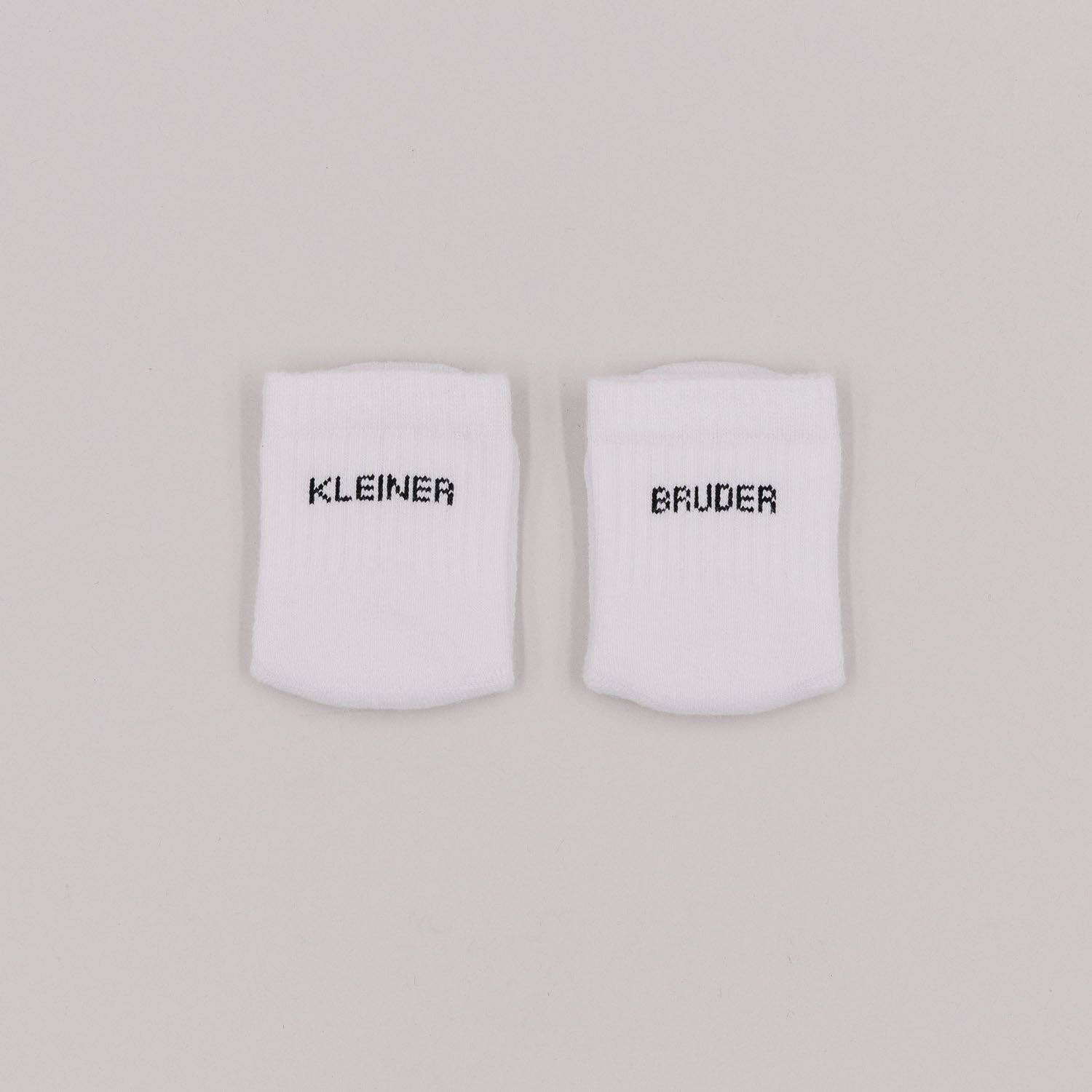 Jetzt wird es auch für die jüngsten Familienmitglieder richtig gemütlich – unsere beliebten Socken gibt es endlich auch für kleine Brüder! Die Babysocken Kleiner Bruder schenken zarten Babyfüßen nicht nur wohltuende Wärme, sondern setzen mit ihrem liebevollen Design ein charmantes Statement. Hergestellt aus weichem, anschmiegsamem Material, bieten sie höchsten Tragekomfort für empfindliche Babyhaut. Der eingestickte Schriftzug „Kleiner Bruder“ auf dem Bündchen macht die Socken zu einem niedlichen Hingucker und bringt Augen zum Leuchten – ob bei den Eltern, Großeltern oder Freunden. Ideal als Geburtsgeschenk, für das erste Fotoshooting oder einfach als süßes Detail im Babyalltag – mit diesen Socken wird sofort klar: Der kleine Bruder ist da und erobert alle Herzen im Sturm!