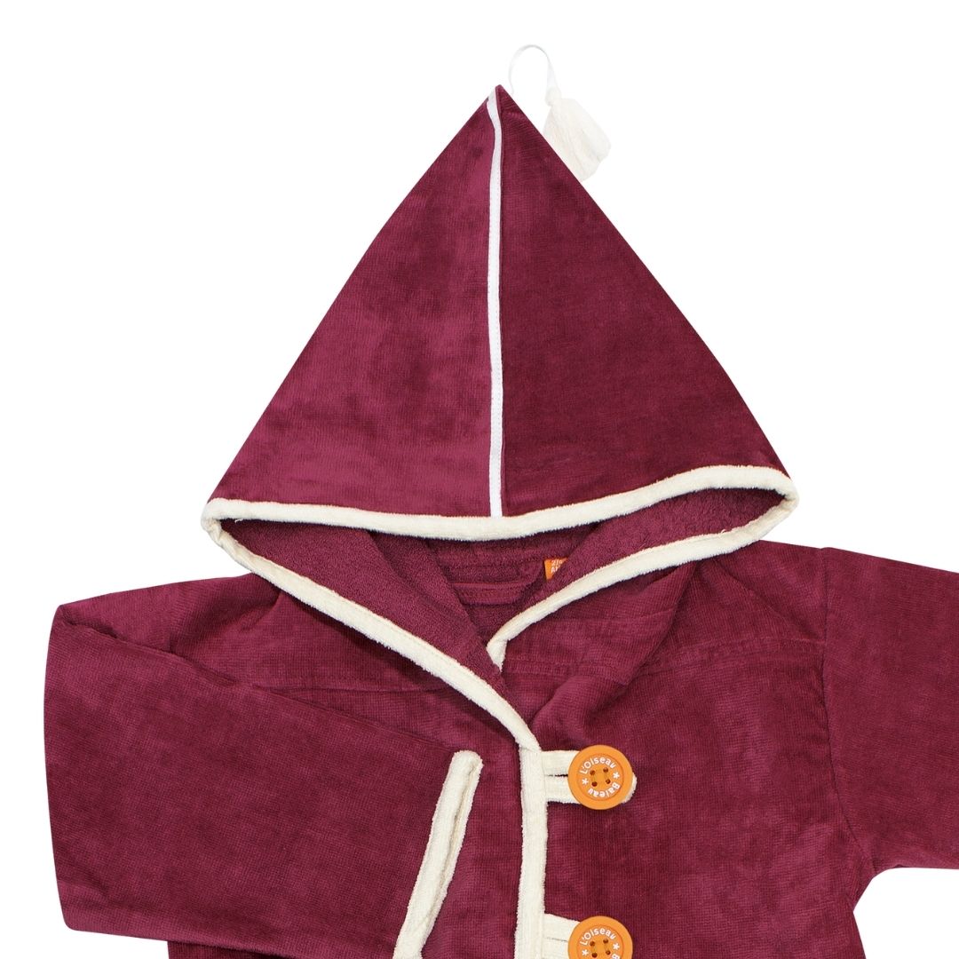 Tauche ein in ein Erlebnis voller Komfort und Gemütlichkeit mit dem zauberhaften Bademantel für Kinder im Alter von 2 bis 6 Jahren. Dieser kuschelige Bademantel in einem kräftigen Bordeaux-Rot begeistert mit einem süßen und liebevoll gestalteten Maus-Queen-Motiv.