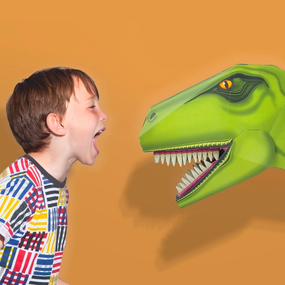 Kreiert Euren eigenen riesigen Dinosaurierkopf, den Ihr an die Wand des Kinderzimmers hängen könnt, sodass es aussieht, als würde ein T-Rex im Zimmer aufschlagen! Leicht verständliche Anweisungen und ein lustiges Aufgabenblatt im Inneren.