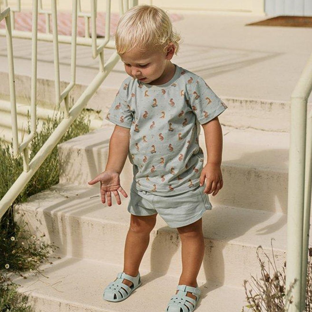 Der klassische Rundhalsausschnitt und die kurzen Ärmel machen das Shirt besonders praktisch. Der Schnitt ist so gewählt, dass dein Kind beim Spielen, Toben oder Entdecken nicht eingeschränkt wird. Egal ob beim Rennen, Klettern oder Radfahren – das T-Shirt macht jede Bewegung mit. Durch die bequeme Passform lässt es sich auch hervorragend mit anderen Kleidungsstücken kombinieren – ideal für vielseitige Sommeroutfits.