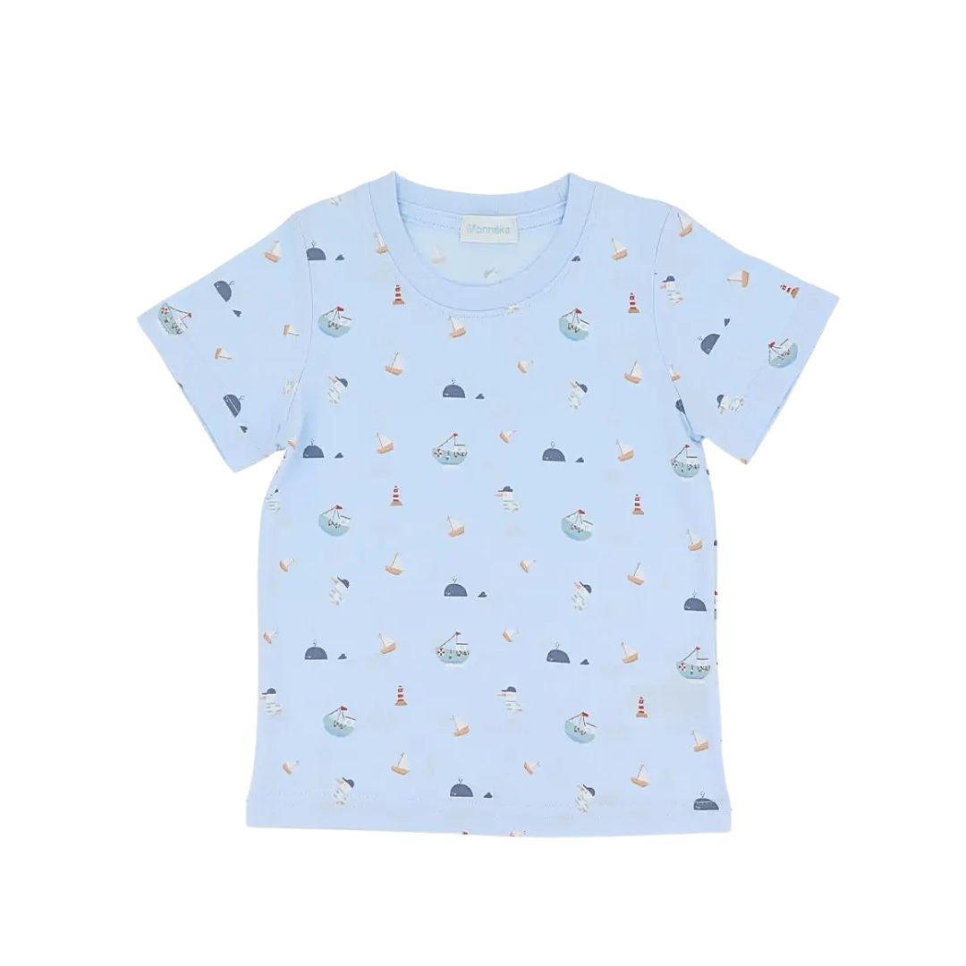 Kinder Baumwoll-T-Shirt mit Fischerbooten – Sommerlicher Look in Blau