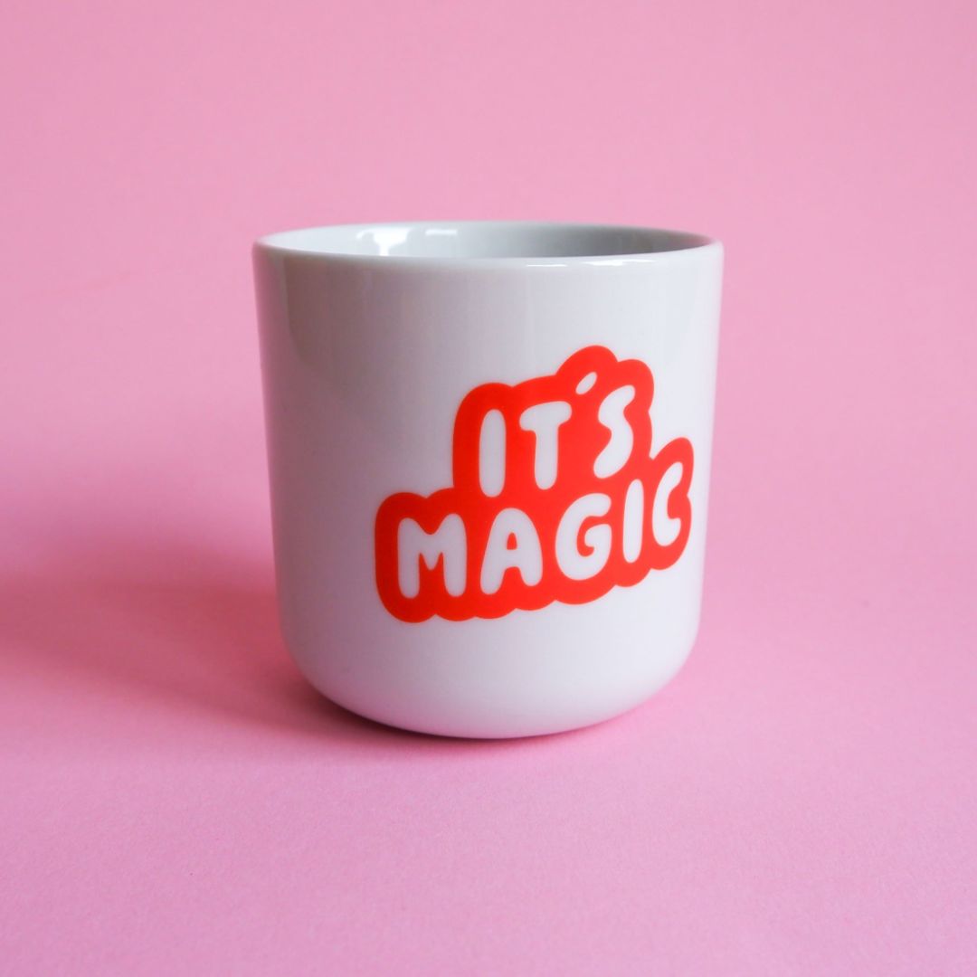 Porzellan Becher weiß mit Aufdruck 'It's magic'