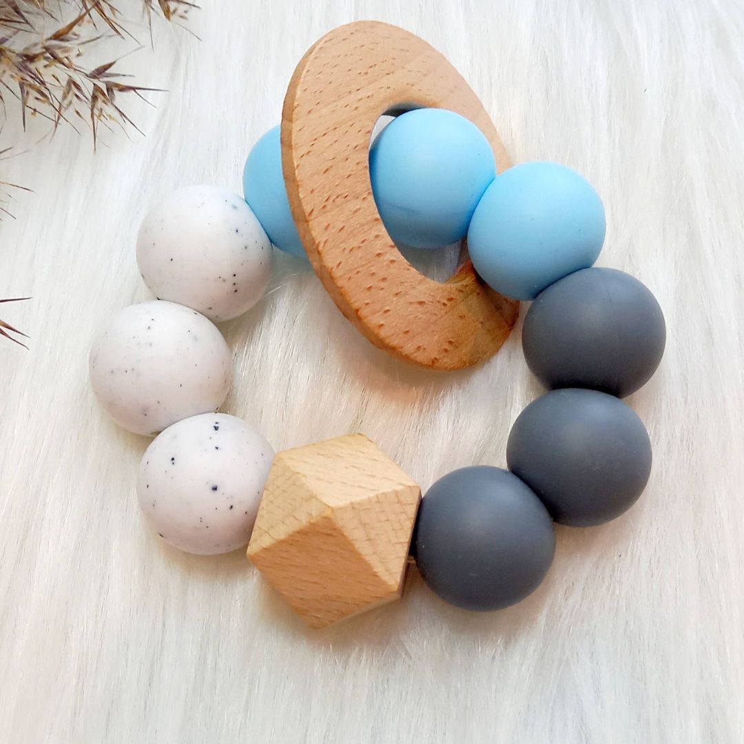 Dieser lustige Beißring ist ein unterhaltsames Spielzeug, das Ihr Kind beim Zahnen unterstützen kann. Er besteht aus bunten Silikonperlen und Holzperlen, die für Ihr Kind äußerst interessant sein werden. Das Kauen auf dem Beißring kann dazu beitragen, das Zahnfleisch zu massieren und die Beschwerden beim Durchbruch der Zähne zu lindern. Darüber hinaus ist das Beißspielzeug aus hochwertigem Material gefertigt und lässt sich leicht von kleinen Händen halten.