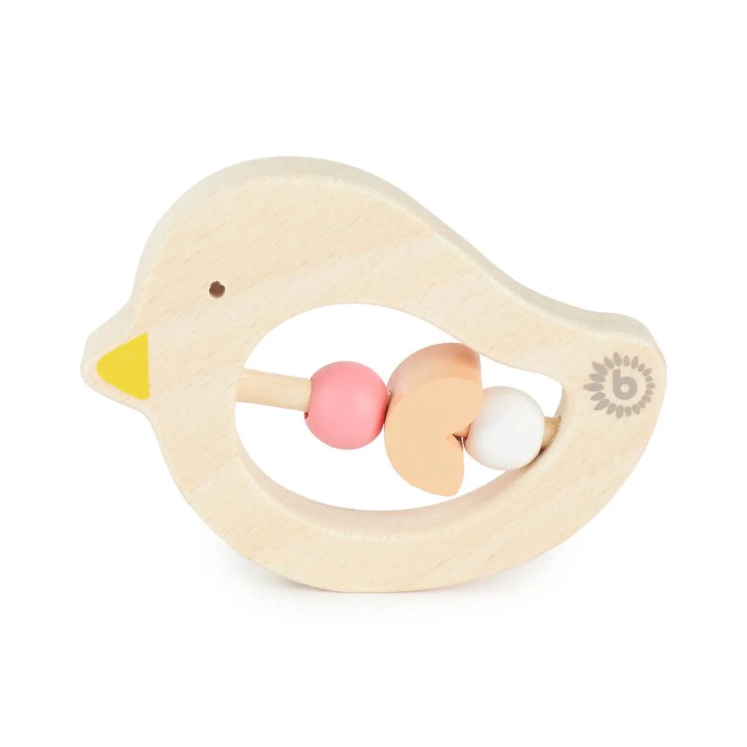 BEISSRING VOGEL ROSE Der Beißring Vogel von Bieco ist die perfekte Unterstützung für das Zahnen Deines Kindes. Das natürliche Holz und das weiche Silikon fühlen sich schön in den Händen Deines Kindes an und sind angenehm beim Beißen. Die verschiedenen Oberflächen animieren zum Greifen, Fühlen und Tasten. Die Zahnungshilfe stärkt den Gaumen deines Babys und hilft den Zahnungsschmerz zu lindern. Wird der Beißring geschüttelt, rasselt es fröhlich und fördert so spielerisch Feinmotorik und den Gehörsinn Deines Kindes. Das dezente Design macht das pädagogisch wertvolle Lernspielzeug zu einem stylischen Begleiter, der Eltern und Kind begeistert. DETAILS * Farbe: rose Mix * Material: Holz (Buche), Farbe auf Wasserbasis * Größe: 10 x 7,5 x 1 cm * Paketinhalt: 1 Beißer PFLEGEHINWEISE * Mit einem feuchten Tuch und milder Seife reinigen.