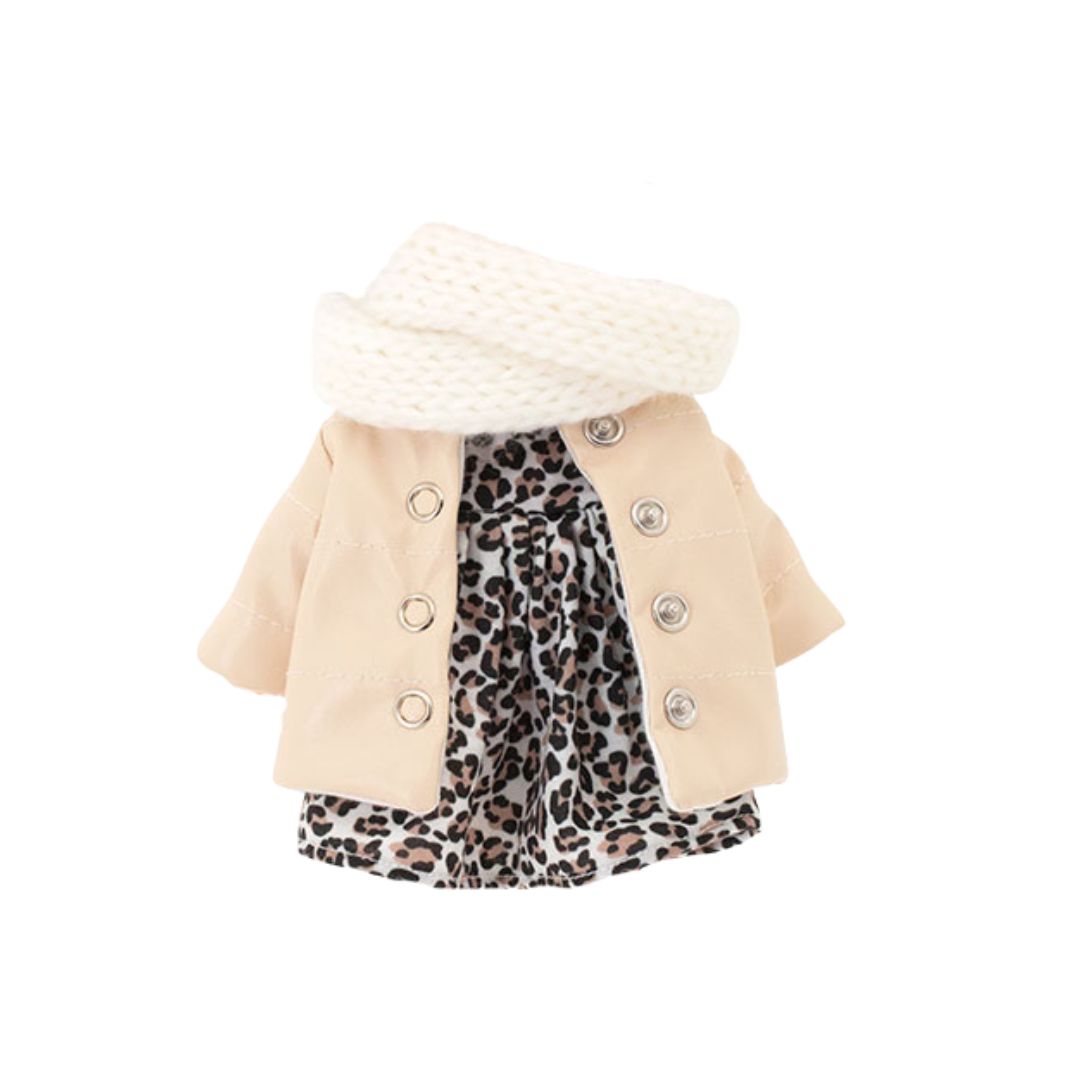 Bekleidungsset: Federjacke, Leokleid, Schal 30cm