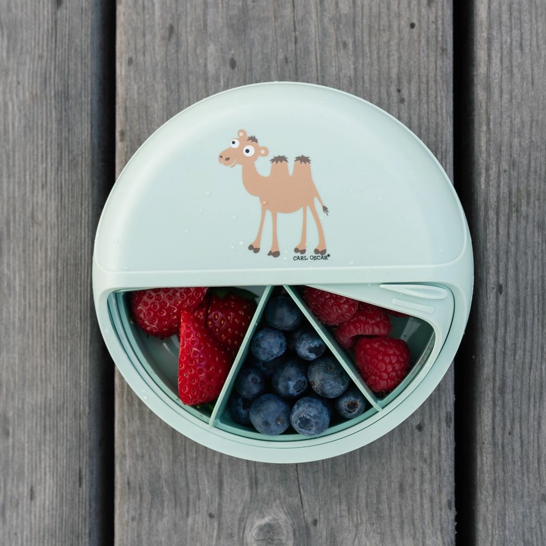 Mit der BentoDisc Snackdisc in Mint Grün und dem niedlichen Kamel-Design wird jedes Mittagessen zu einem spannenden Erlebnis! Egal, ob du für die Kindertagesstätte, die Schule, einen Ausflug oder ein Picknick packst, diese innovative Snackdisc ist die perfekte Lösung, um eine gesunde, umweltfreundliche und praktische Mahlzeit zusammenzustellen.