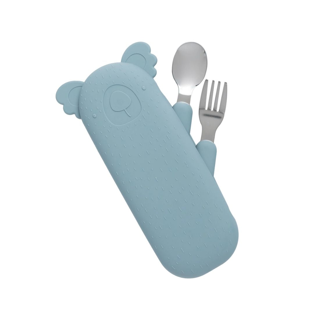 Besteckset und Etui „Zoe the Koala“ – Der perfekte Begleiter in Blau für kleine Essensabenteuer