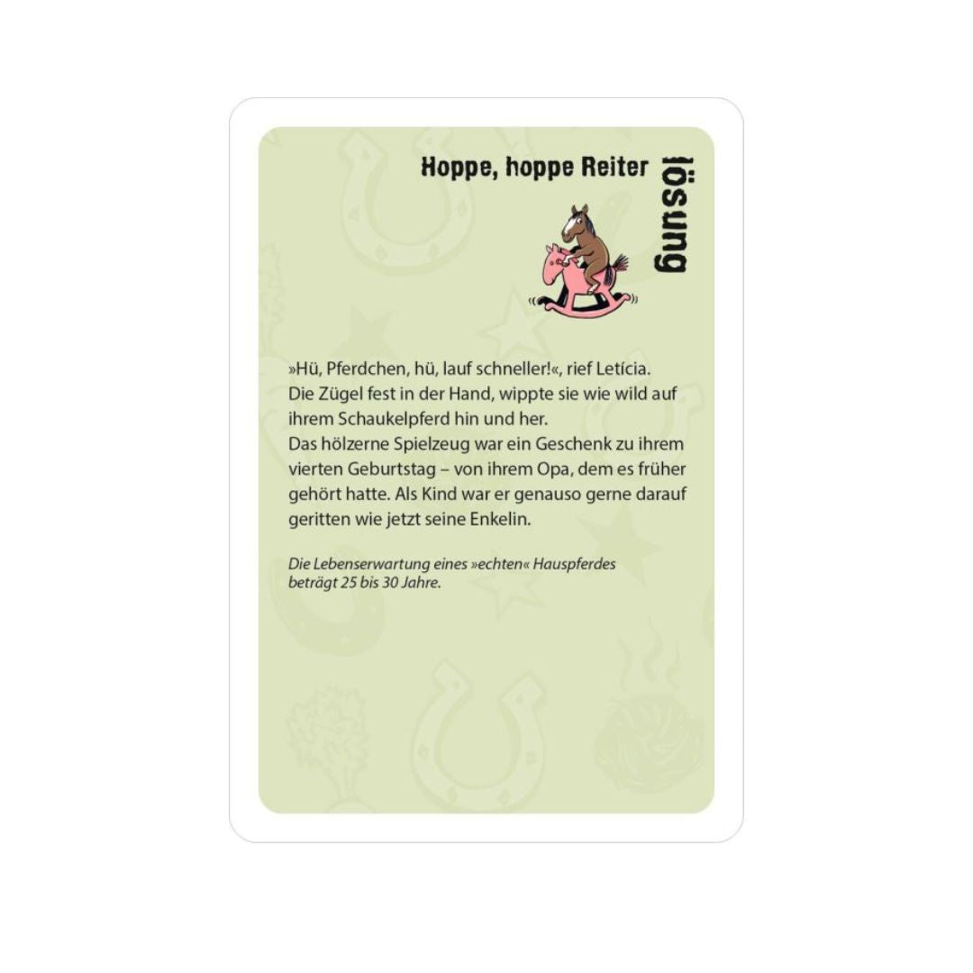 Die 50 Geschichten sind abwechslungsreich und bieten für jeden Spielerin etwas. Egal, ob du ein Pferdefan bist oder einfach nur Rätsel liebst – die Geschichten sind spannend und garantieren einen aufregenden Spielabend.