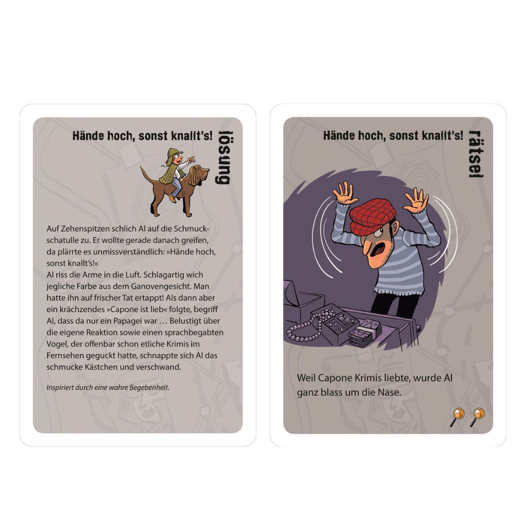 Wie konnte ein Mann überleben, als er ohne Fallschirm aus einem Flugzeug sprang? Was hat es mit dem Supermarktdieb auf sich, der nach seiner Tat 150 Euro ärmer war? Und warum freut sich Bill, als er Opfer eines Diebstahls wird? Diese und viele weitere spannende Fragen warten darauf, von dir und deinem Rate-Team gelöst zu werden.