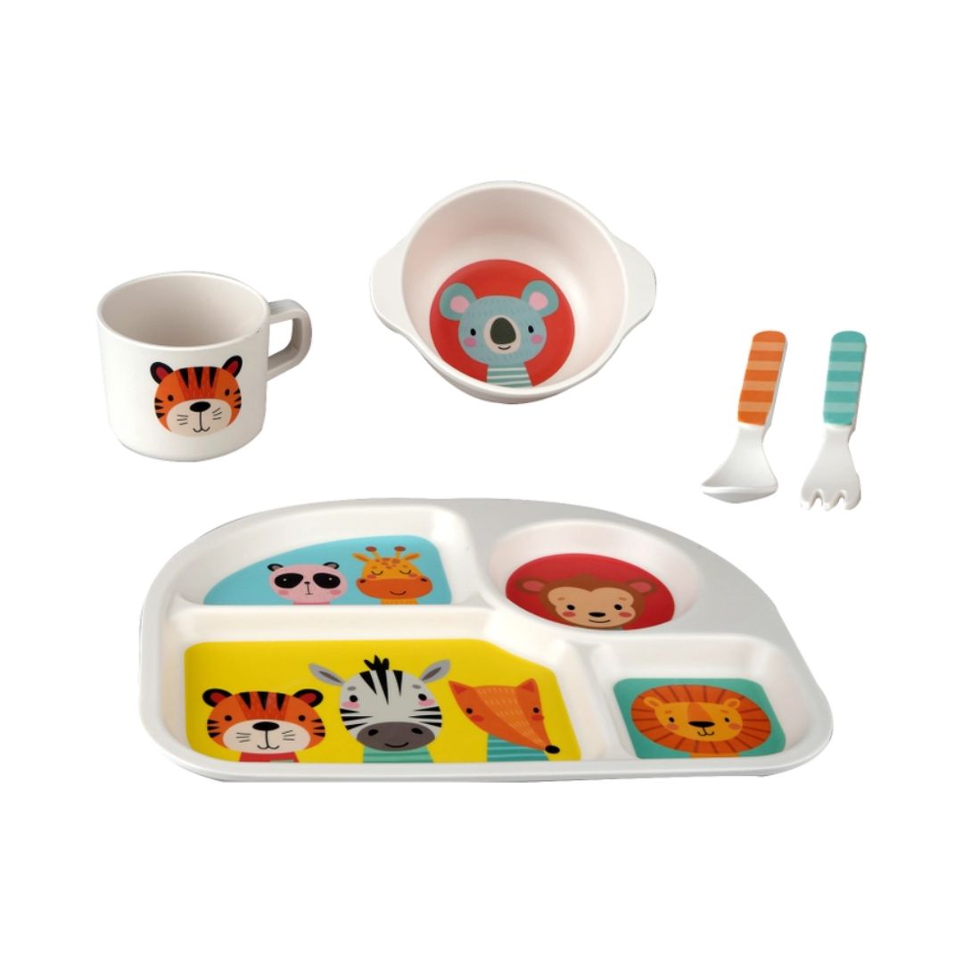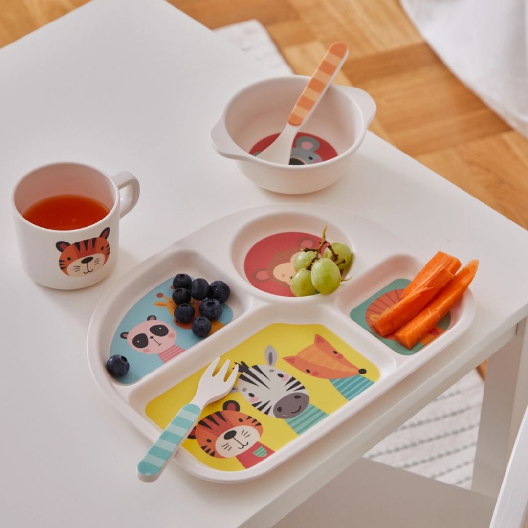 Das Safari-Geschirrset enthält alles, was dein Kind für eine vollständige Mahlzeit benötigt: