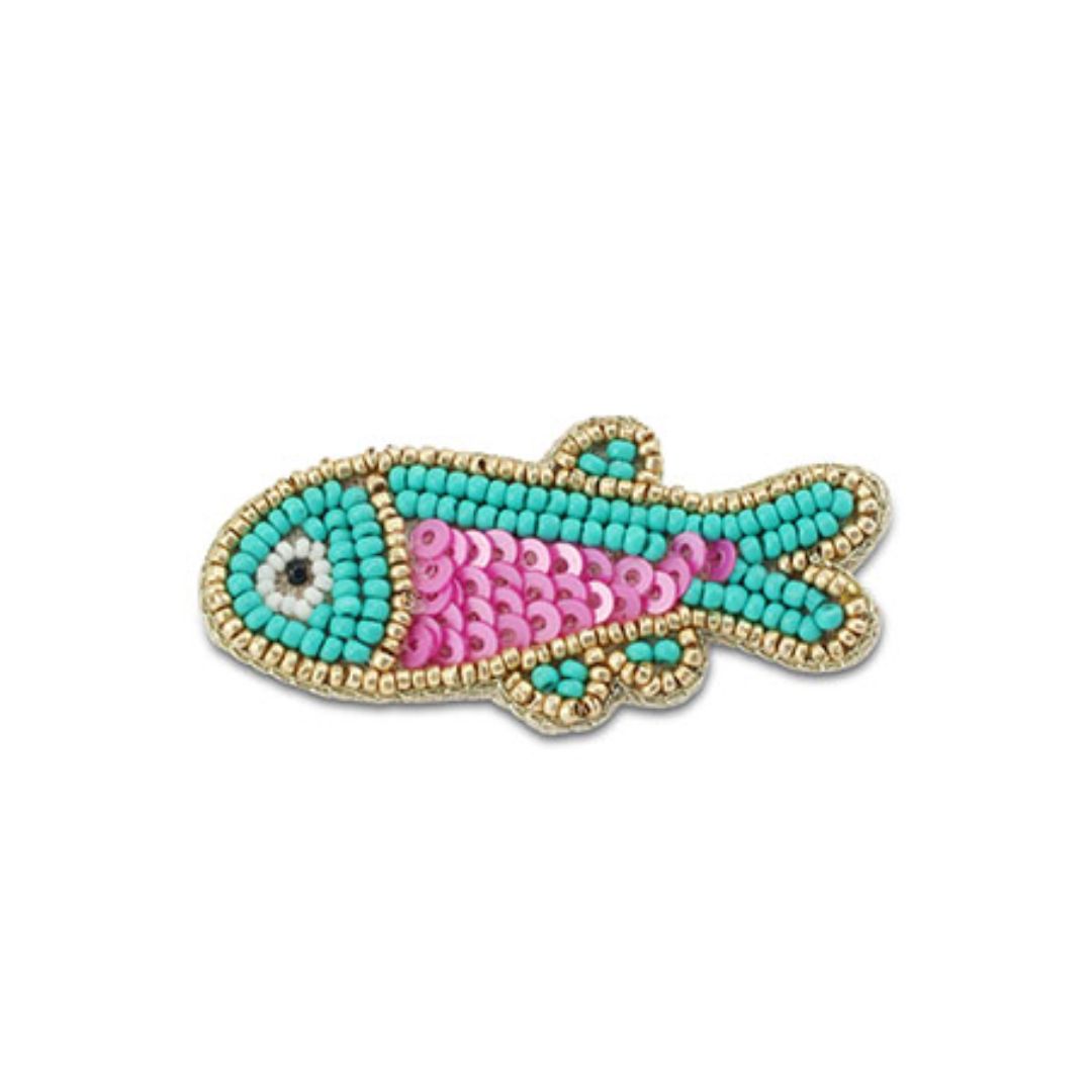 Diese Brosche wurde liebevoll von Hand gefertigt und mit farbenfrohen Perlen, die ihnen eine lebendige Ausstrahlung verleihen, verziert.