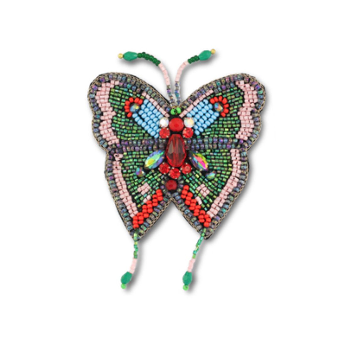 Diese Brosche wurde liebevoll von Hand gefertigt und mit farbenfrohen Perlen, die ihnen eine lebendige Ausstrahlung verleihen, verziert.