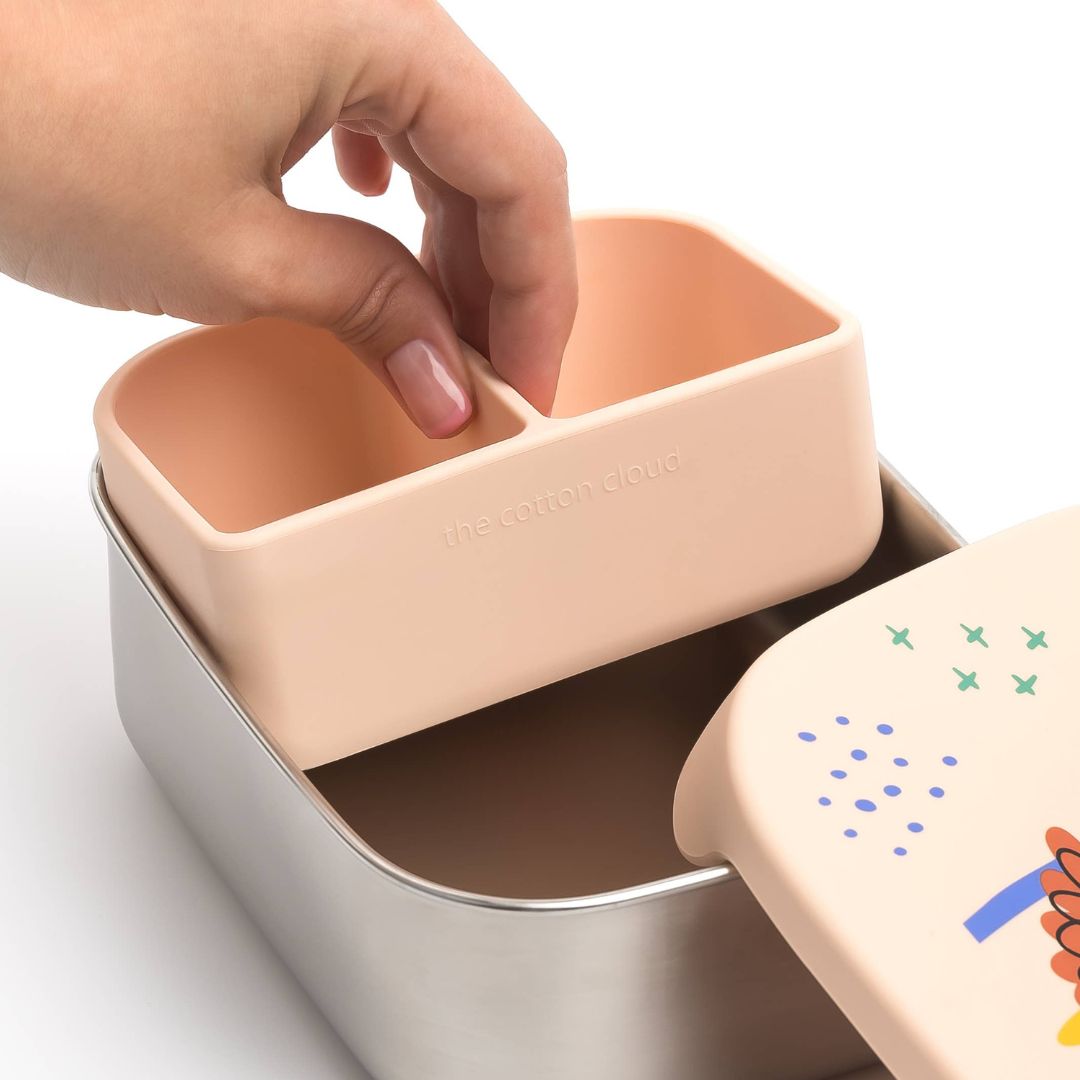 Die Edelstahl-Lunchbox ist pflegeleicht und kann einfach von Hand gereinigt werden. Der Silikondeckel kann ebenfalls problemlos abgewaschen werden und behält seine Form und Flexibilität. Beachte jedoch, dass die Lunchbox nicht für die Mikrowelle geeignet ist.
