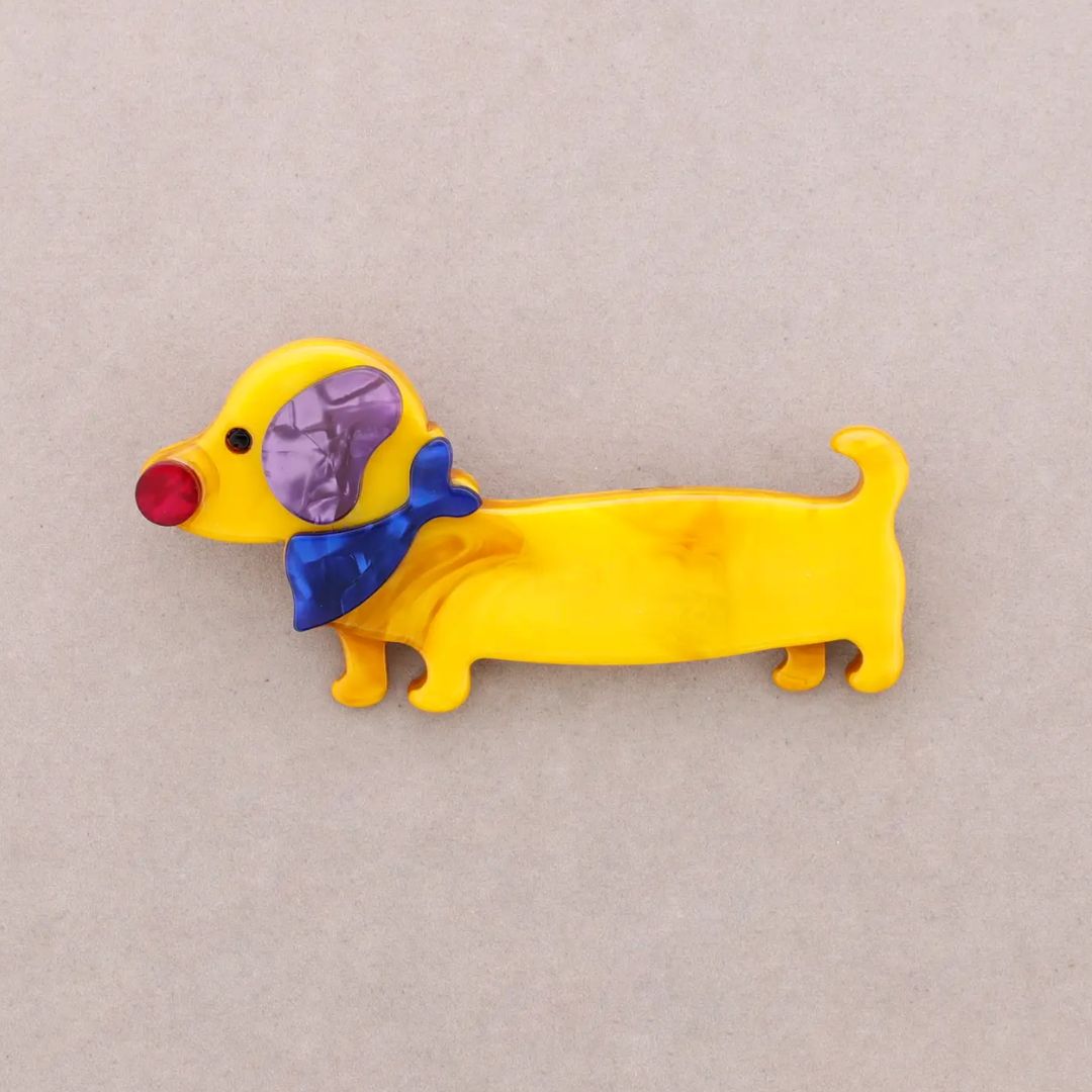 Hundebrosche aus Kunstharz 'Dackel' gelb