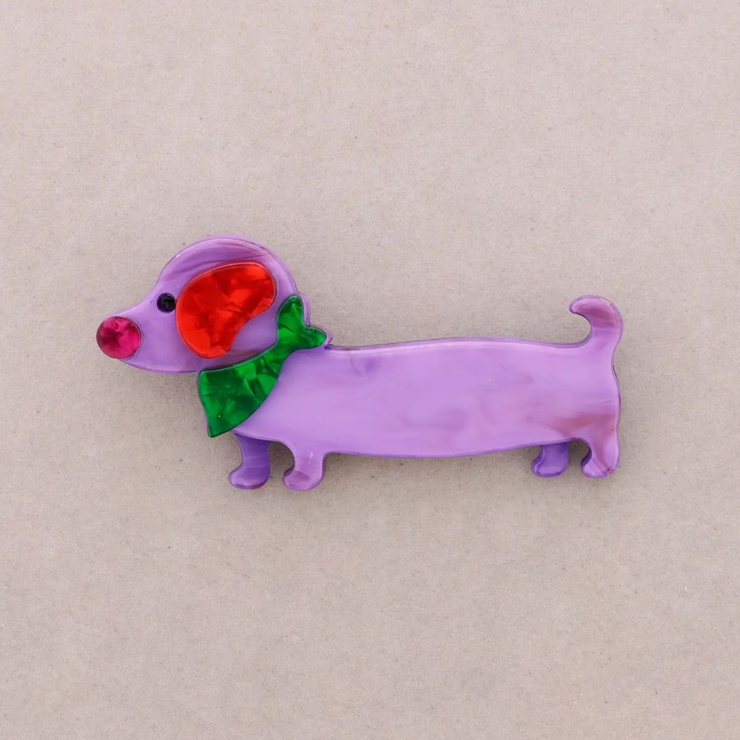 Hundebrosche aus Kunstharz 'Dackel' lila