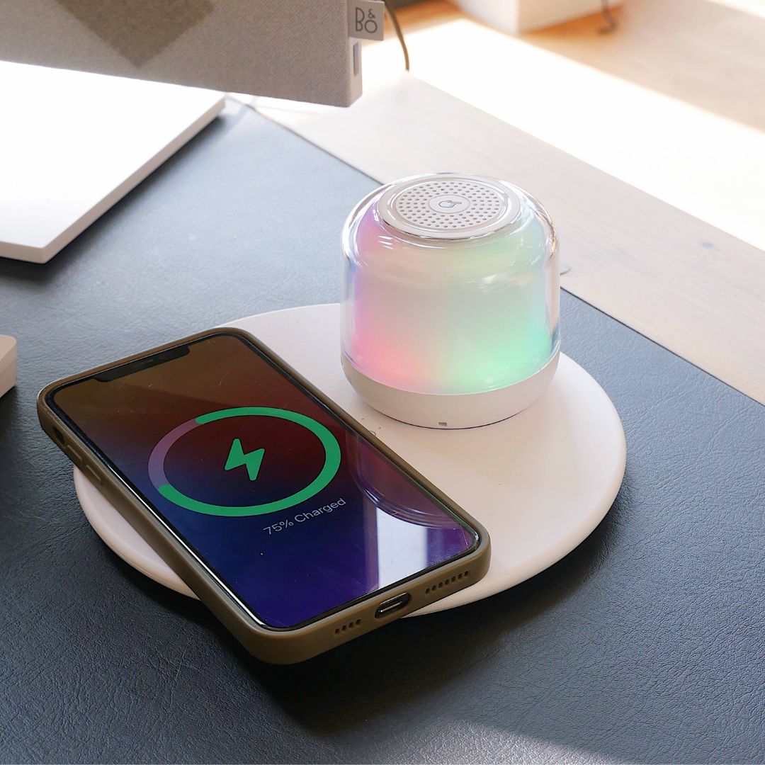 Entdecke jetzt Charge & Play – dein multifunktionales Ladepad mit integriertem Bluetooth-Lautsprecher und Nachttischleuchte. Ein Must-have für alle, die Technik lieben und auf Stil nicht verzichten wollen.