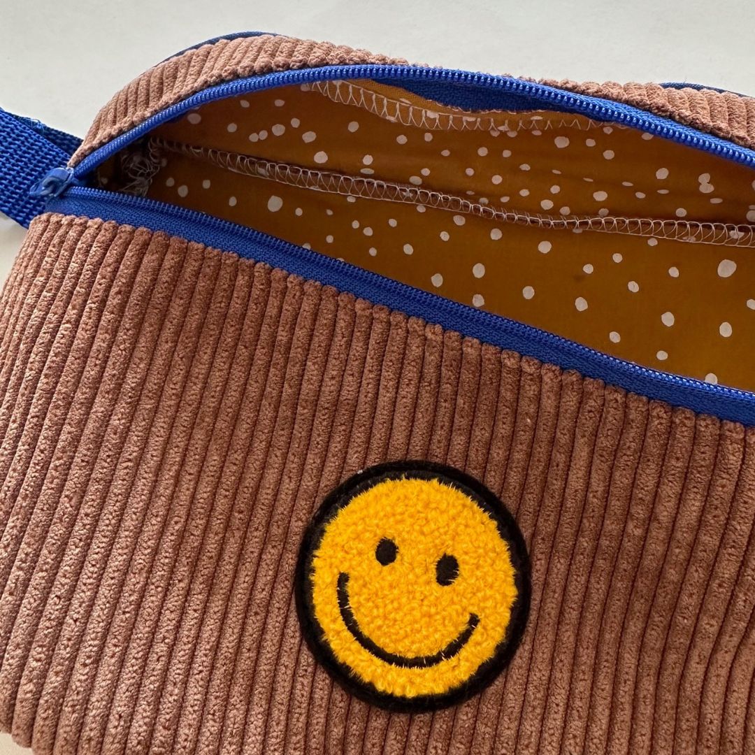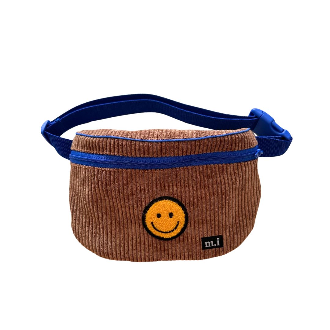 Cord Bauchtasche Hip Bag für Kinder braun mit Smiley