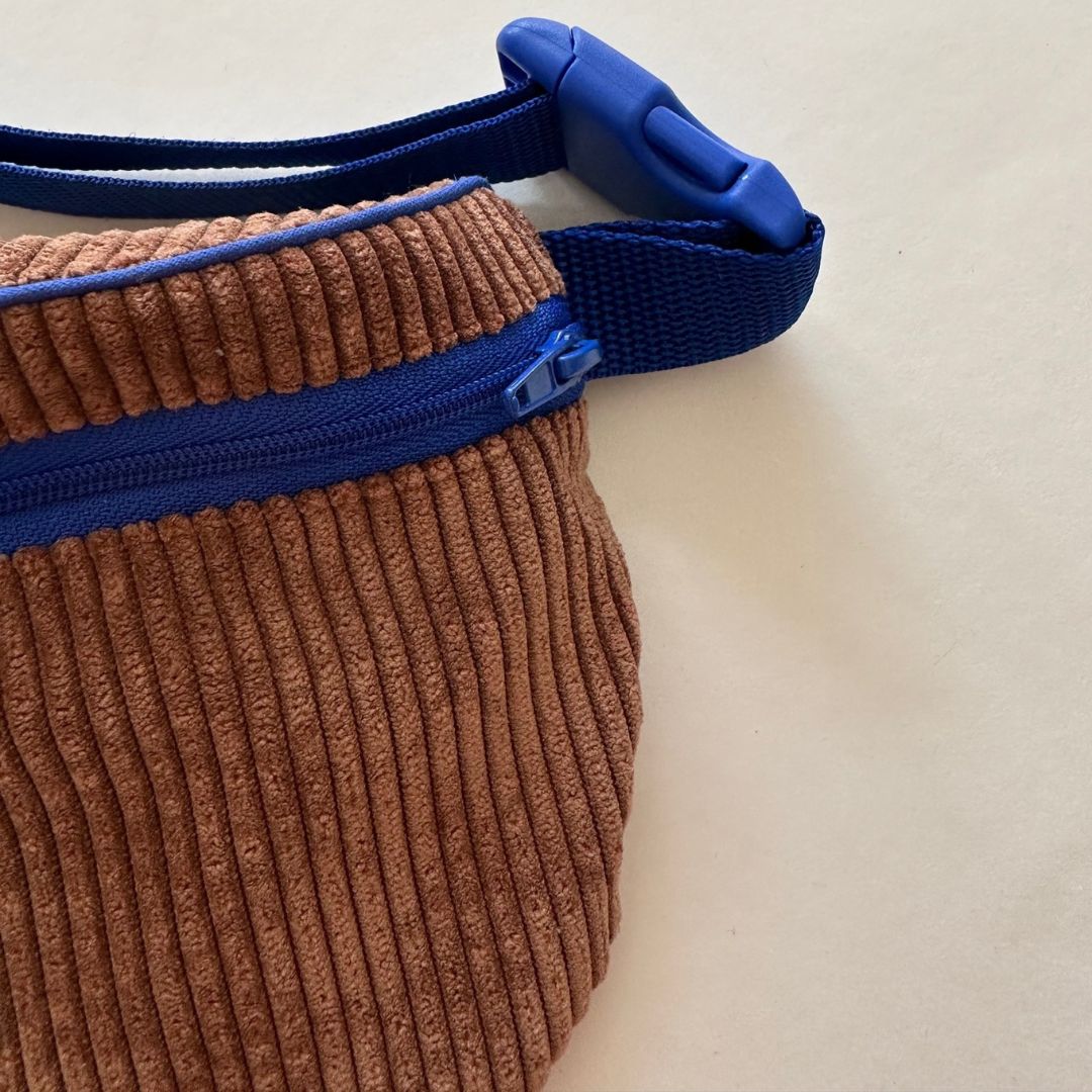 Bauchtasche Hip Bag für Kinder aus Cord und Canvas in Braun/Blau