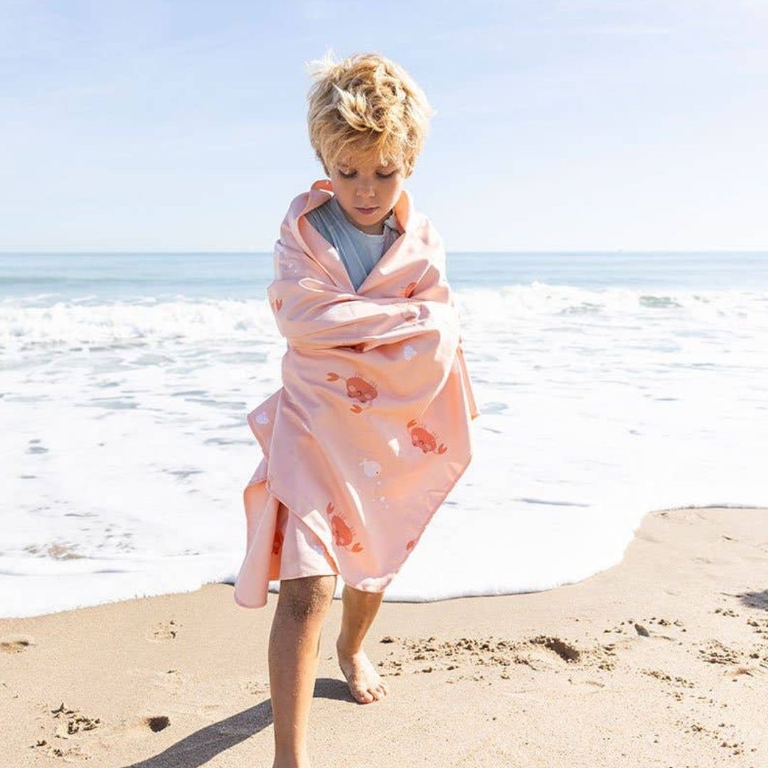Mikrofaser-Strandtuch für Kinder Farbe: coral mit Krabbenmuster