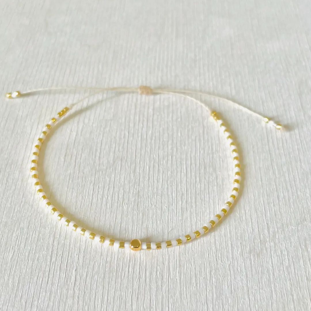 Du suchst ein Armband, das stilvoll, fein und individuell ist? Dann hast Du es gefunden. Dieses verstellbare Miyuki Perlenarmband in Weiß und Gold ist ein echtes Lieblingsstück: Es trägt sich leicht, passt sich Dir an, und verleiht jedem Outfit einen Hauch von Eleganz. Ob für Dich selbst oder als Geschenk – dieses Armband ist eine wunderbare Wahl. Denn es vereint all das, was modernes Design ausmacht: Klarheit, Qualität und Bedeutung.