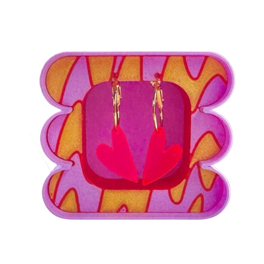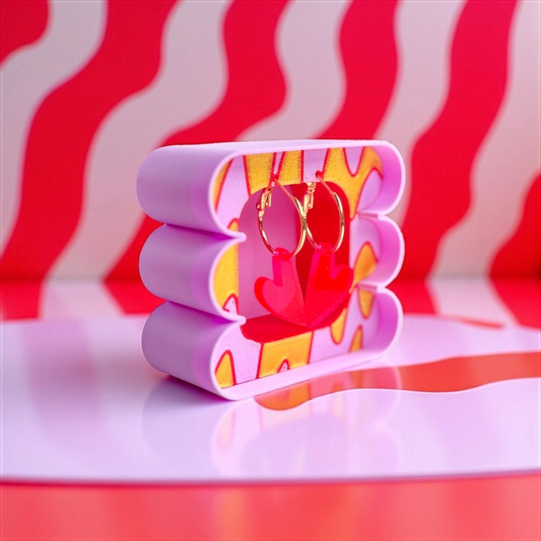Bunt, bold & einfach nur WOW – diese Kreolen sind nichts für graue Mäuse. Aus Edelstahl, 24k vergoldet und trotzdem superleicht – du spürst sie kaum, aber alle anderen sehen sie sofort. Natürlich allergiefreundlich – also null Stress für empfindliche Haut. Daran hängt ein Acryl-Herz in knalligen Farben, das je nach Licht richtig cool wirkt. Ein Piece, das sofort gute Laune macht und jedes Outfit aufs nächste Level hebt. Das Beste: Sie kommen in einer 3D-gedruckten Box aus PLA – einem nachwachsenden Rohstoff auf Basis von Maisstärke. Bedeutet: nicht nur praktisch & stylisch, sondern auch umweltfreundlich. Die Box ist so schön, dass sie nach dem Tragen easy im Regal stehen bleiben kann – designed to keep. Und noch ein Plus: Designed & produziert in Bayern – mit Liebe, Qualität und einem klaren Blick fürs Detail. Creolen ca. 18 mm - Acrylherzen ca. 21 x 13 x 3 mm