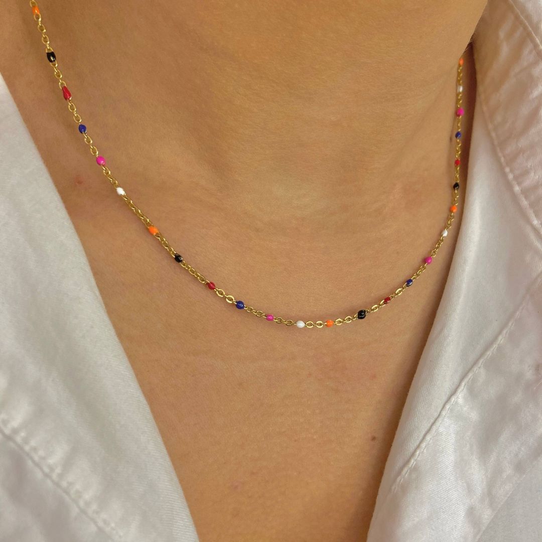 Damen Halskette gold mit mehrfarbigen Emaille-Elementen