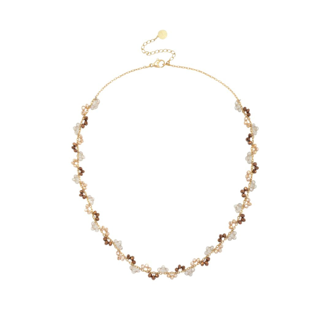 Damen Halskette aus Edelstahl mit kleinen Glasperlenbeschlägen khaki