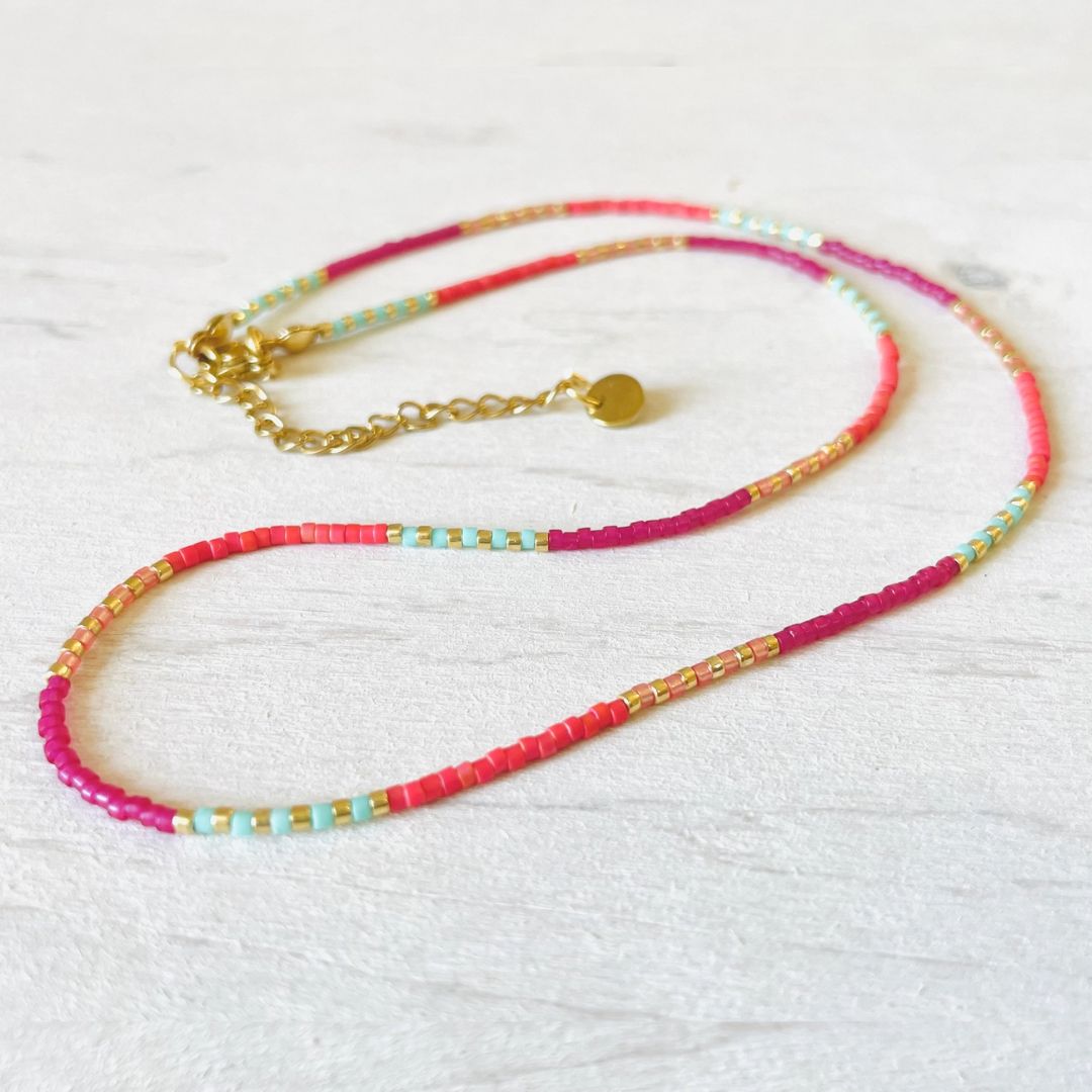 Mit dieser Miyuki-Perlenkette in Fuchsia holst du dir ein Schmuckstück, das mehr ist als nur ein Accessoire. Es steht für deinen Stil, deine Energie und deine Lust auf Farbe. Es ist fein gearbeitet, mit hochwertigen Materialien gefertigt und so gestaltet, dass es dich durch jeden Tag begleitet – mit Stil, Ausdruck und ganz viel Leichtigkeit.