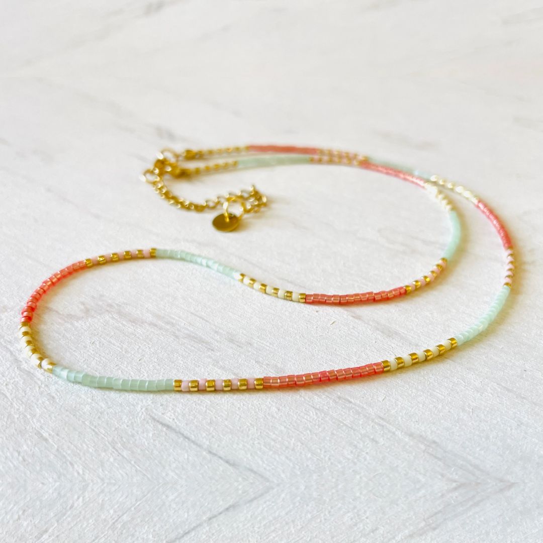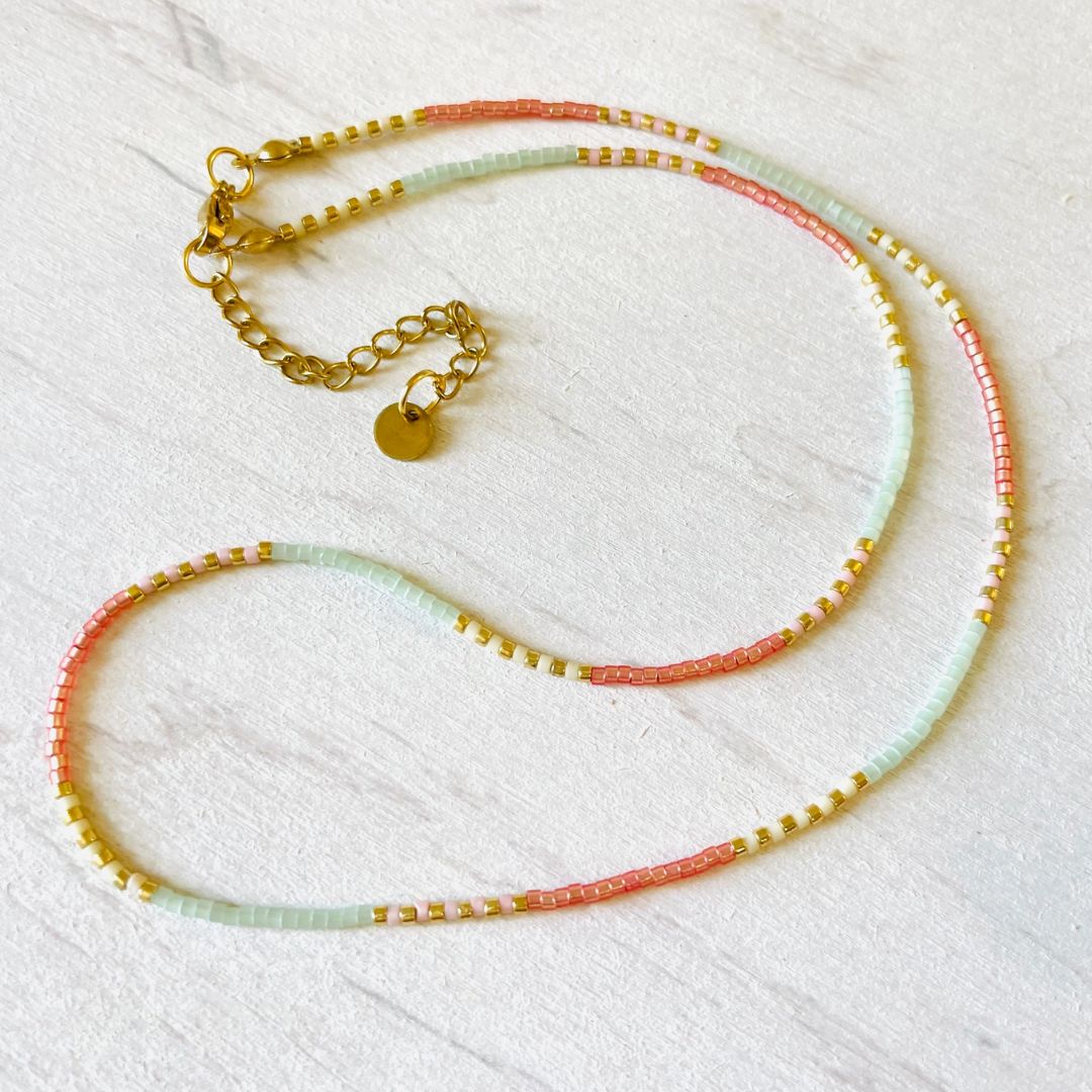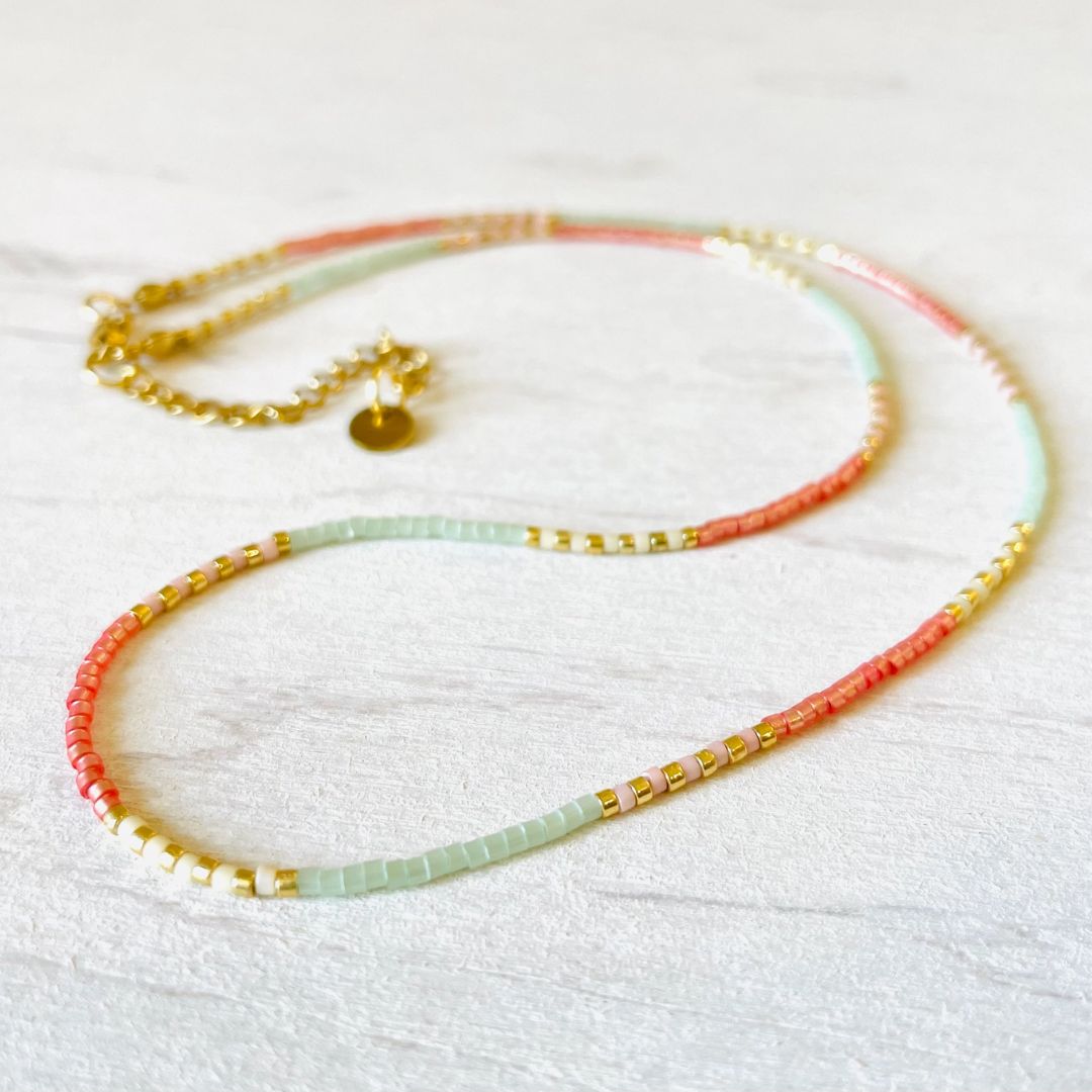 Warum du diese Miyuki Halskette in Mintgrün, Coral und Gold lieben wirst