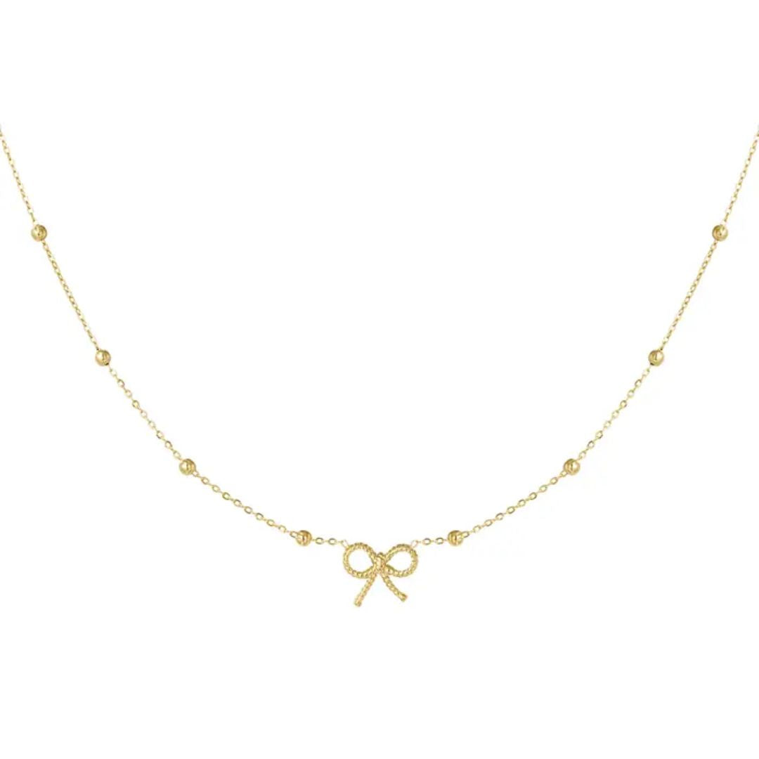 Elegante Damen Halskette mit Schleife und kleinen Kugeln in Gold