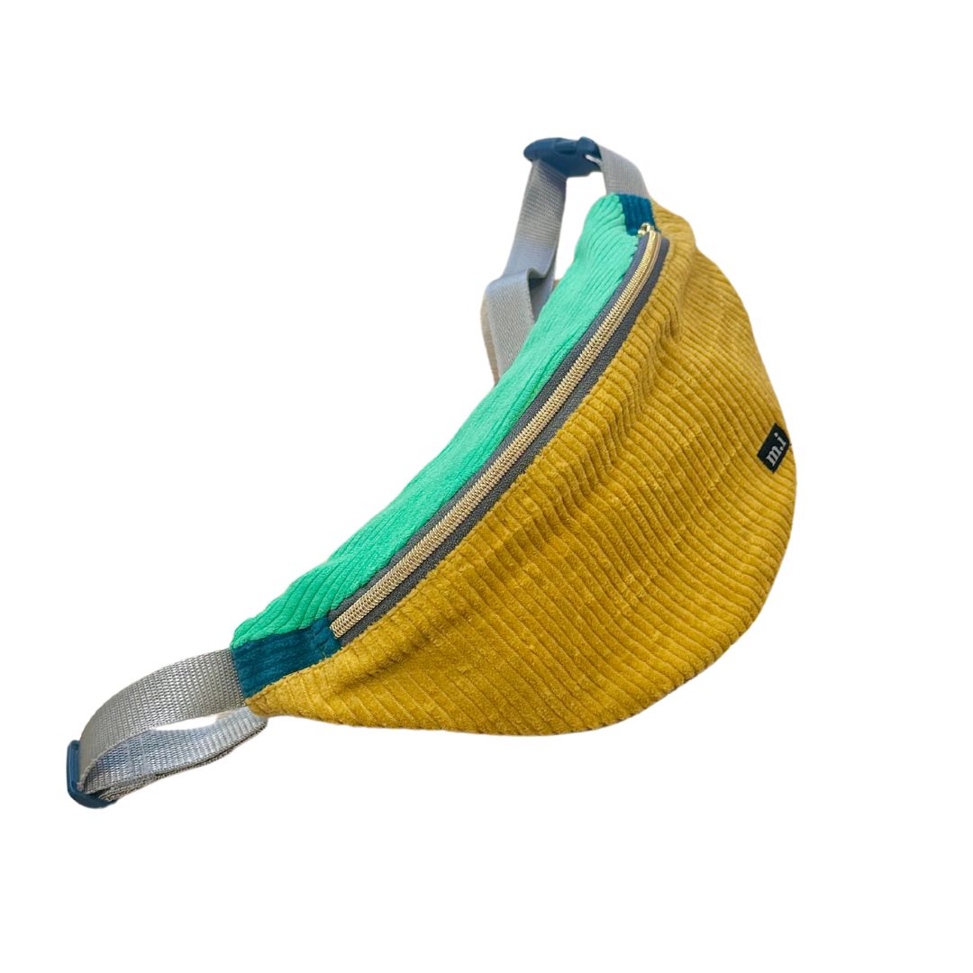 Die Hipbag besteht aus weichem, strapazierfähigem Cordstoff, der nicht nur angenehm in der Hand liegt, sondern auch eine hohe Langlebigkeit bietet. Die robusten Materialien sorgen dafür, dass du lange Freude an deiner Tasche hast – ganz gleich, ob du sie auf dem Festival, beim Stadtbummel oder beim Spaziergang durch die Natur trägst. Der goldene Reißverschluss bildet einen eleganten Kontrast zum farbenfrohen Stoff und rundet das Design stilvoll ab.