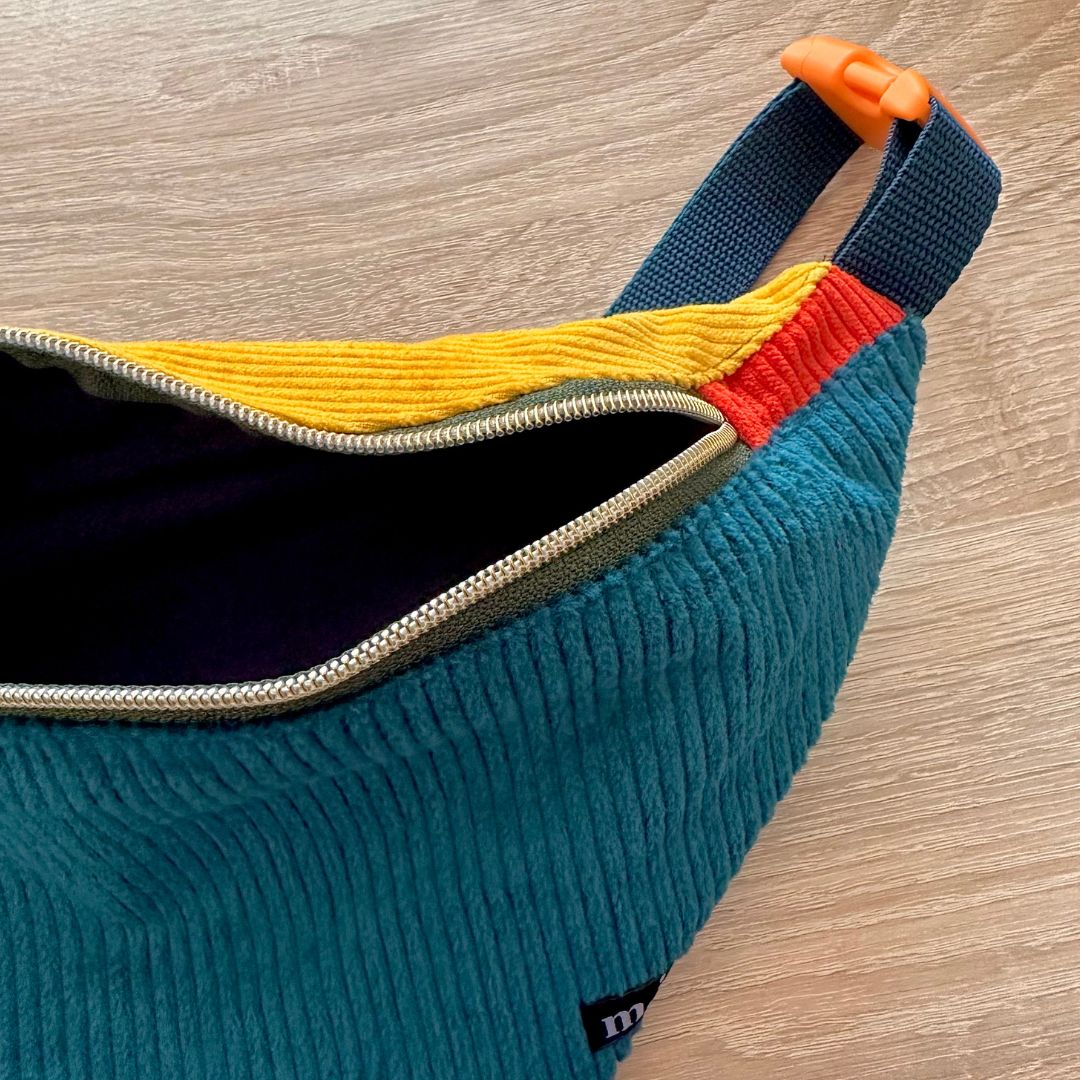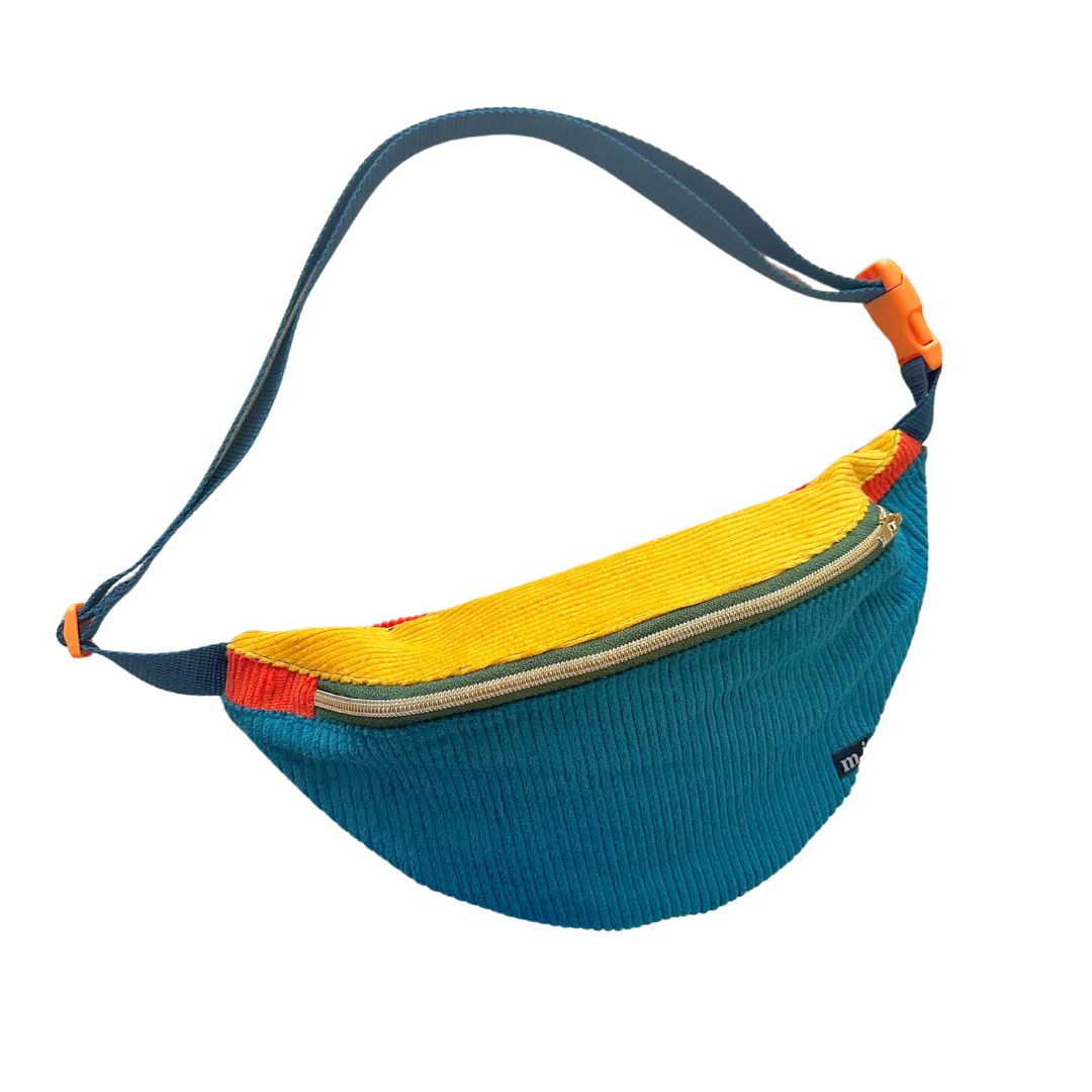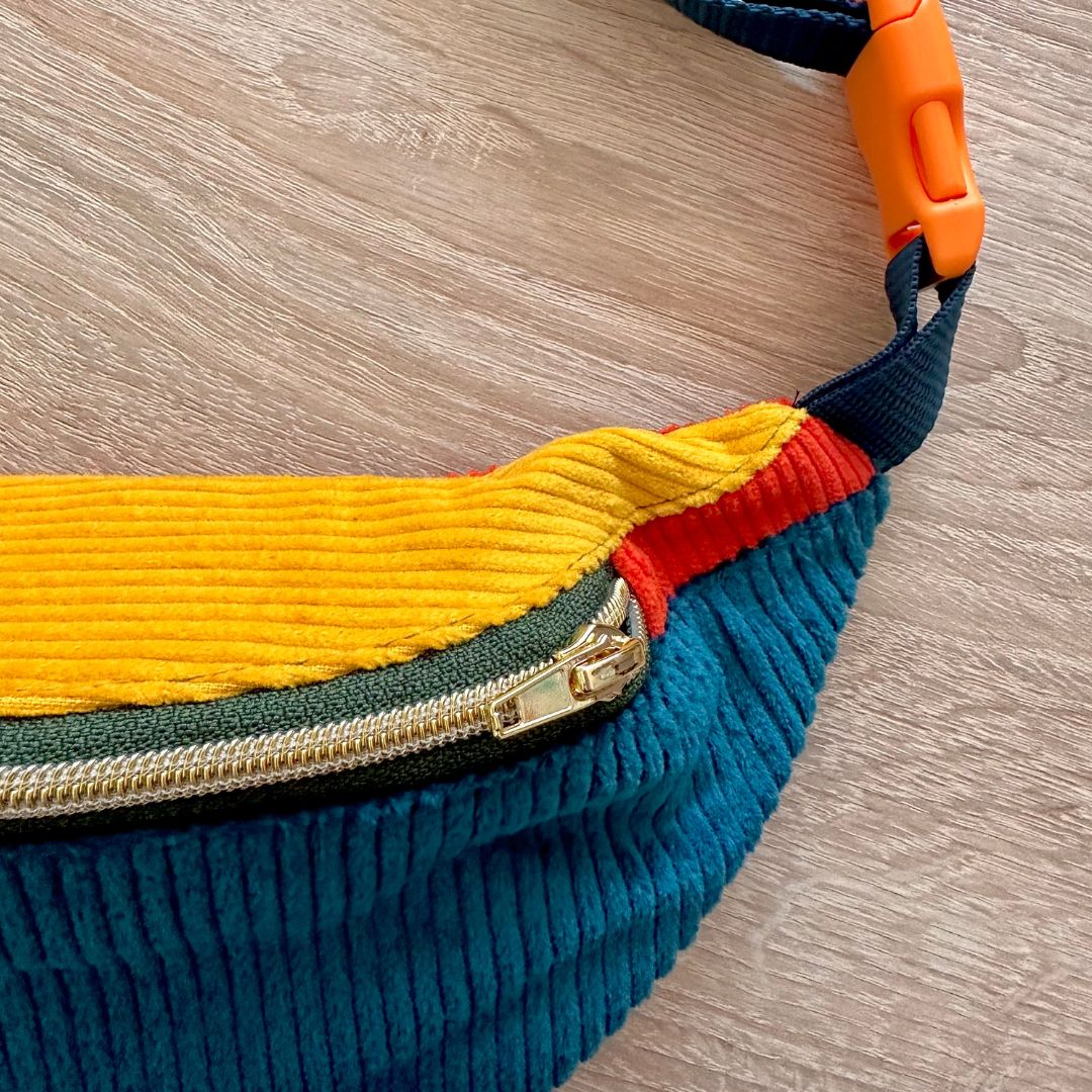 Die Patchwork Unique Gürteltasche besteht aus stabilem Cordstoff, der durch seine Langlebigkeit und seine angenehme Haptik überzeugt. Die Farbgebung in Blau, Rot und Gelb ist nicht nur auffällig, sondern auch harmonisch aufeinander abgestimmt. Das Material fühlt sich weich an, bleibt aber formstabil – perfekt also für den täglichen Gebrauch. Der goldfarbene Reißverschluss sorgt nicht nur für sicheren Verschluss, sondern verleiht der Tasche auch eine edle Note.