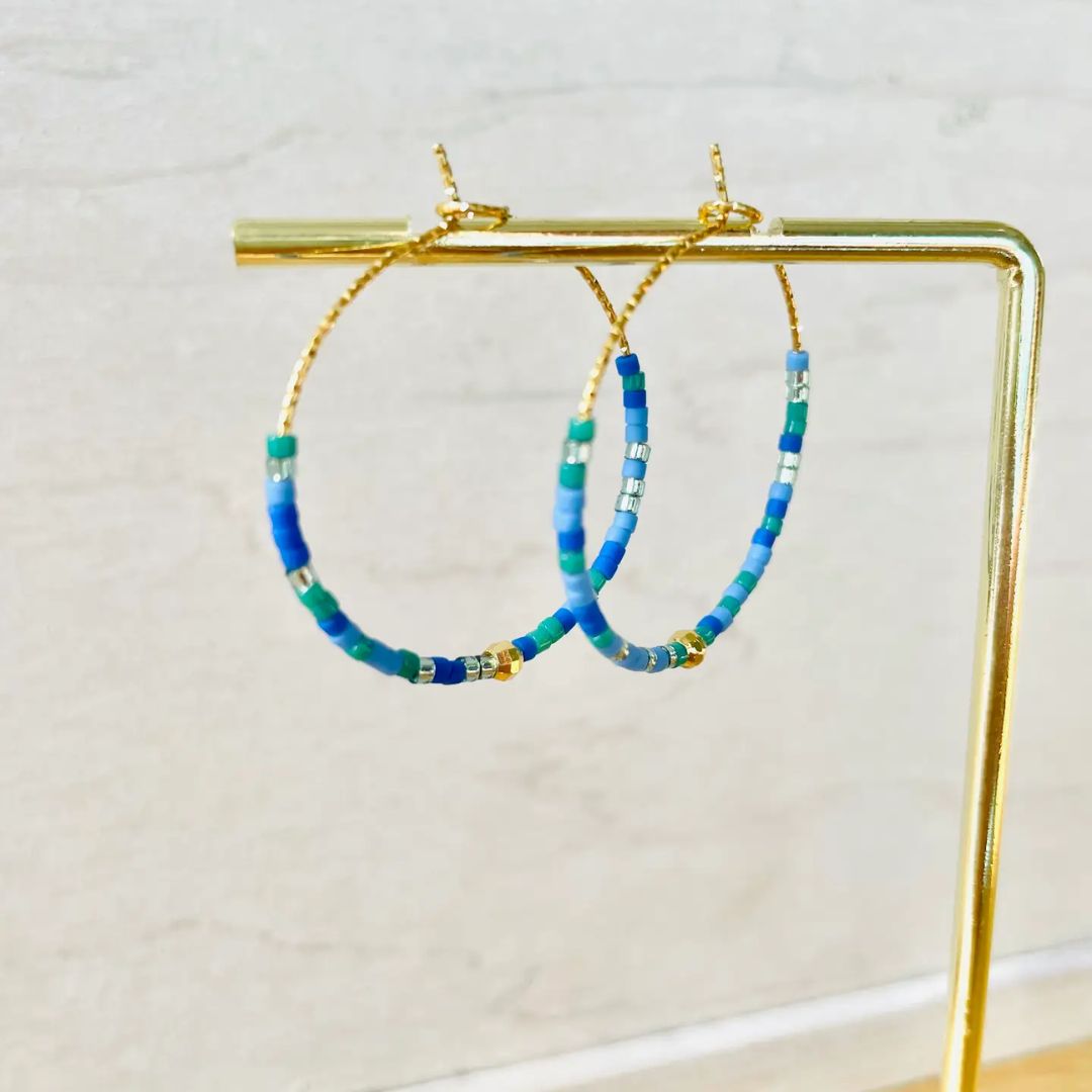 Damen Ohrringe Creolen Miyuki blau/türkis
